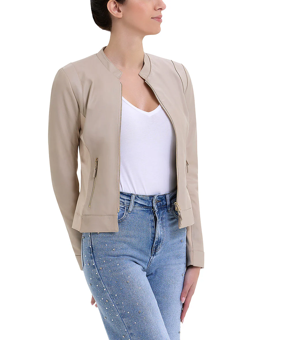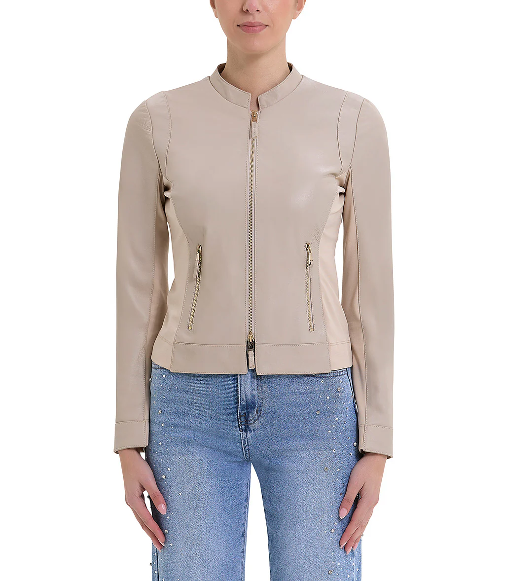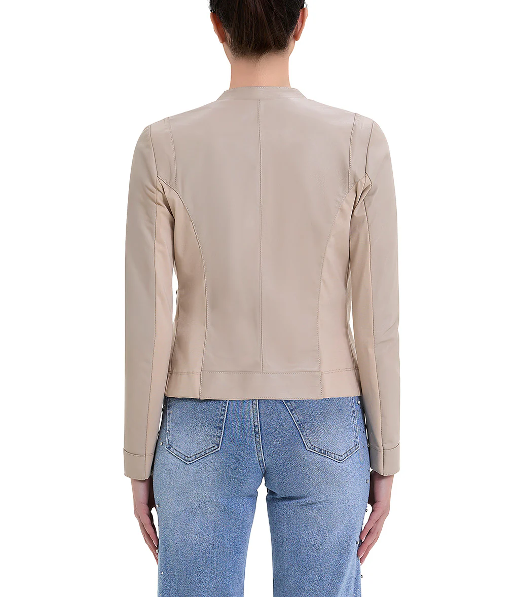 Giacca color ecru in pelle