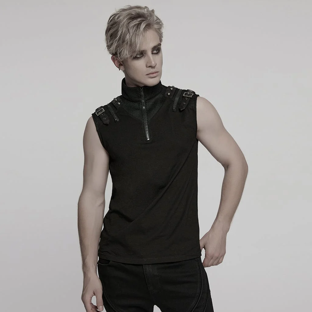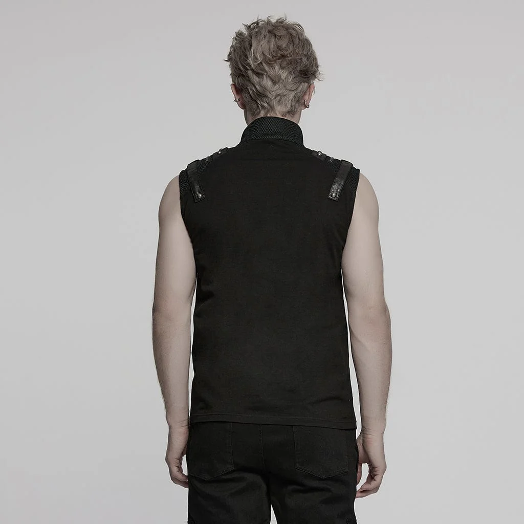 Gilet da uomo con cerniera e colletto rialzato in rete punk