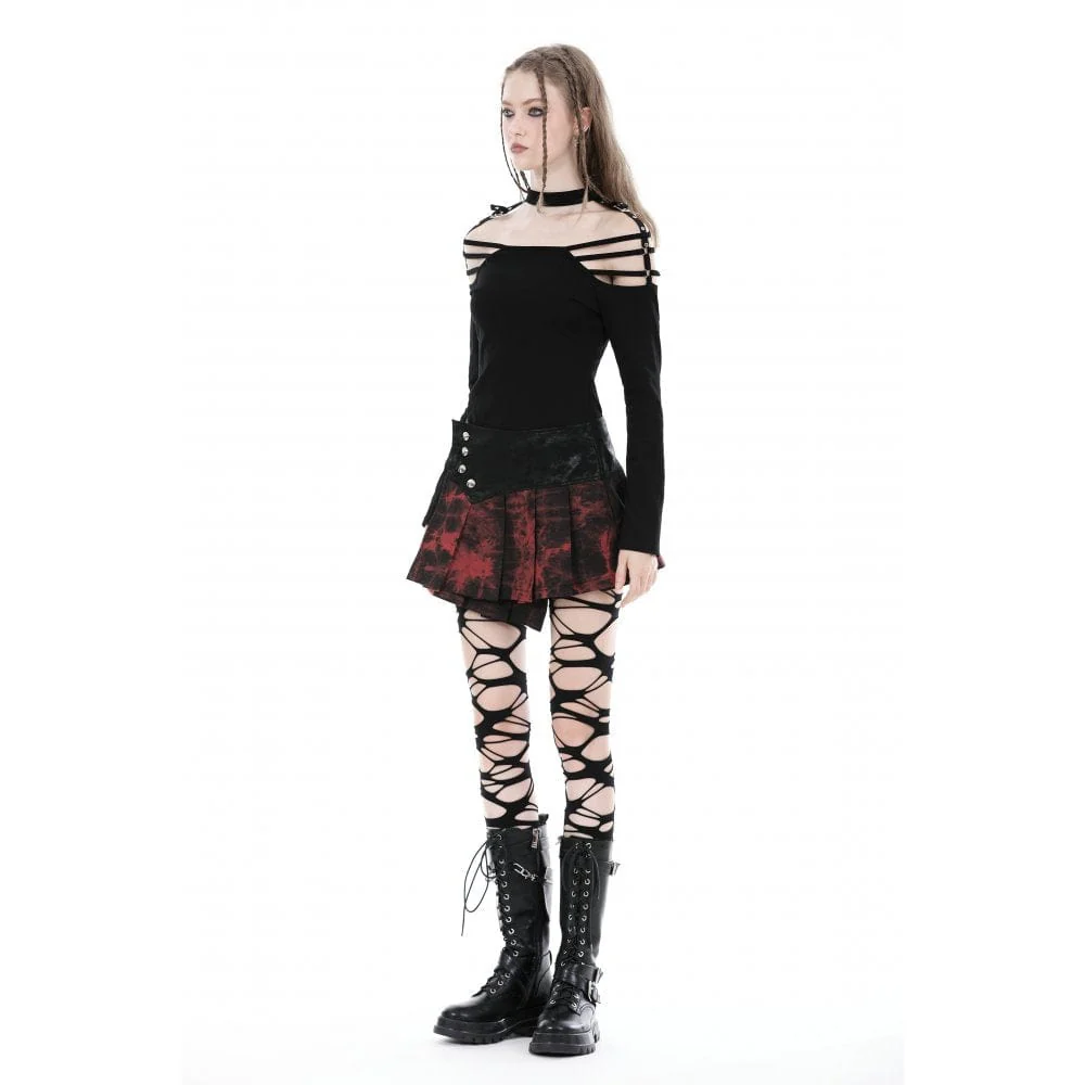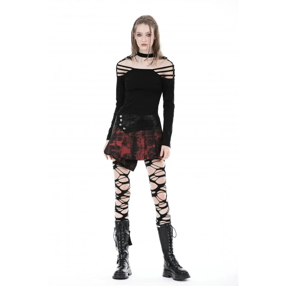 Questa gonna grunge è patchwork con tessuto tinto in massa. Design a vita alta. La disposizione irregolare dei bottoni in vita per la chiusura.