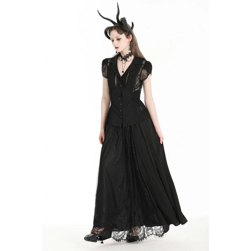 I dettagli in pizzo patchwork esaltano l’estetica gotica della gonna, creando un motivo delicato e intricato che aggiunge profondità e consistenza al design. Il patchwork di pizzo aggiunge un tocco romantico ed etereo alla gonna, perfetto per esprimere il tuo stile unico.