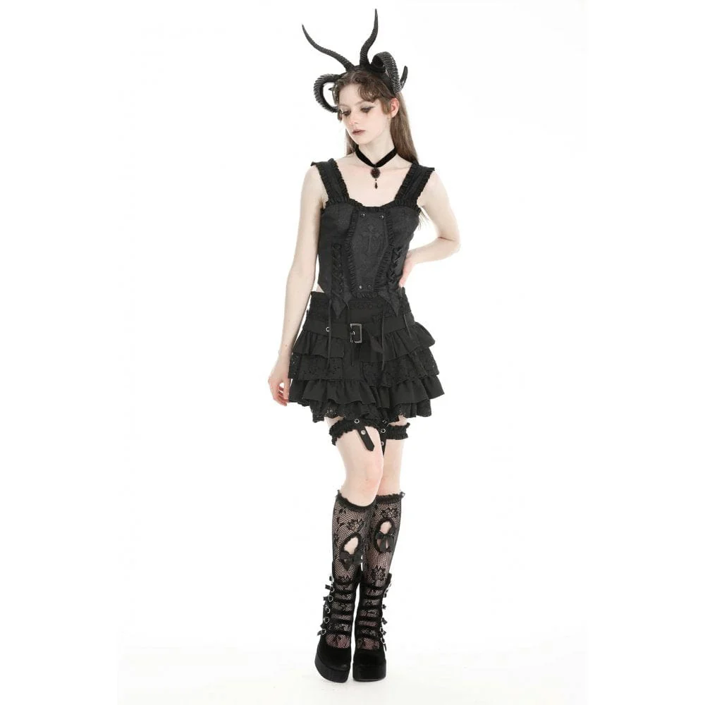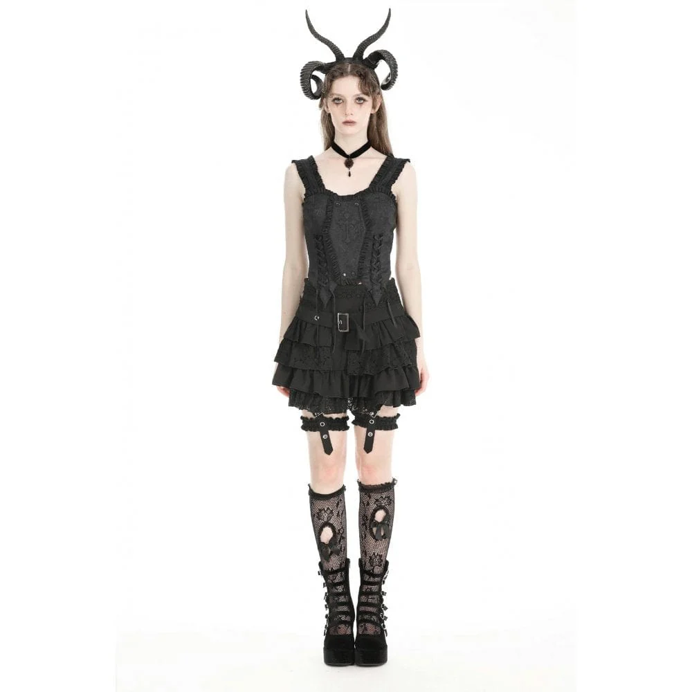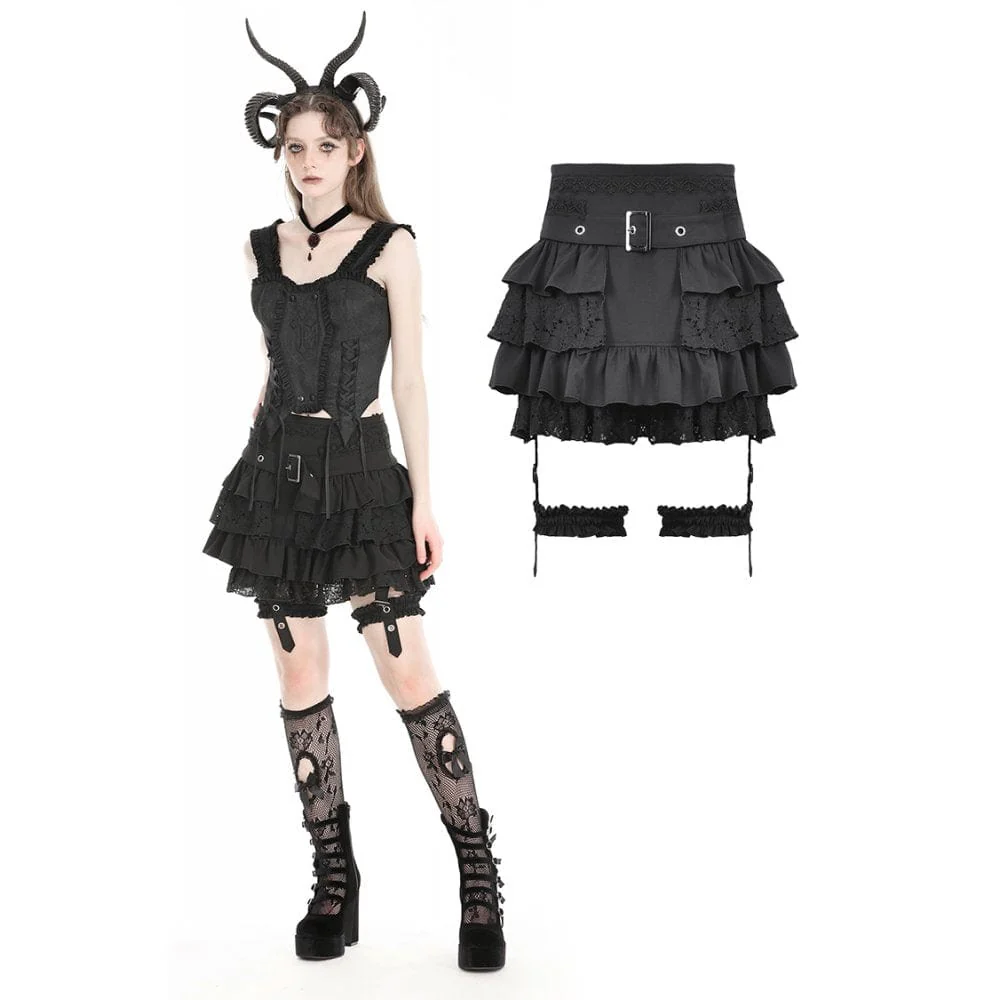 Migliora il tuo completo gotico con il fascino incantevole della gonna gotica da donna con giuntura in pizzo a vita alta con giarrettiera, un pezzo accattivante che combina intricati dettagli in pizzo con un tocco di stile spigoloso. Questa gonna è progettata per migliorare il tuo guardaroba gotico con le sue caratteristiche uniche e la silhouette seducente.