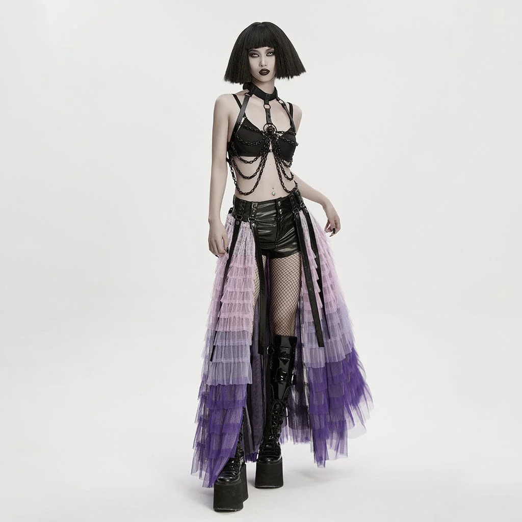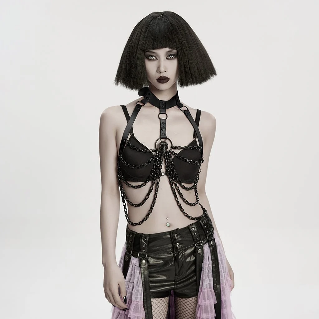 Imbracatura per il corpo da donna con catena a forma di teschio punk e nodo a pipistrello staccabile, nera