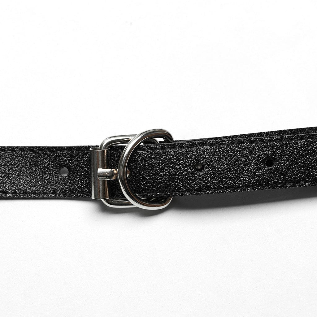 Questa imbracatura punk è realizzata in finta pelle. Design incrociato e borchiato sul davanti. Scollo all’americana con fibbia regolabile sul retro. Collegati da anelli di metallo. Nessun tessuto elastico.