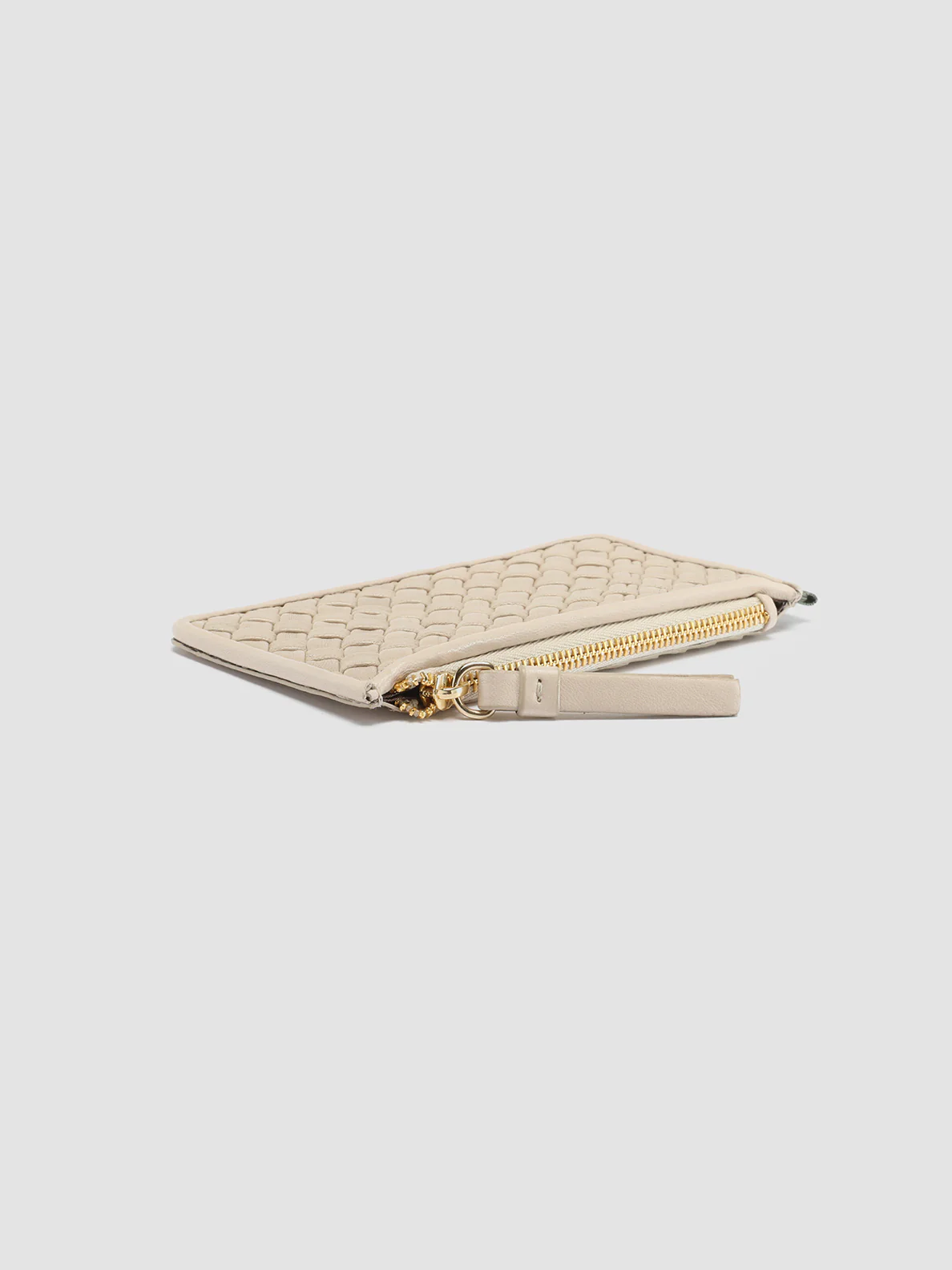 Realizzato interamente a mano nei nostri laboratori, il nostro portacarte Juliet si distingue per il motivo intrecciato in pregiata pelle bianca. Presenta uno scomparto con chiusura a zip in galvanica oro, sei scomparti porta carte, la stampa del nostro logo a caratteri sul davanti e l’inconfondibile fettuccia in gros-grain sul lato.