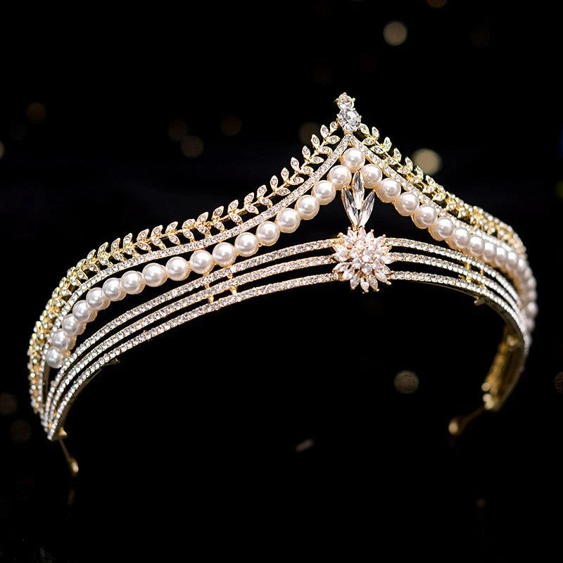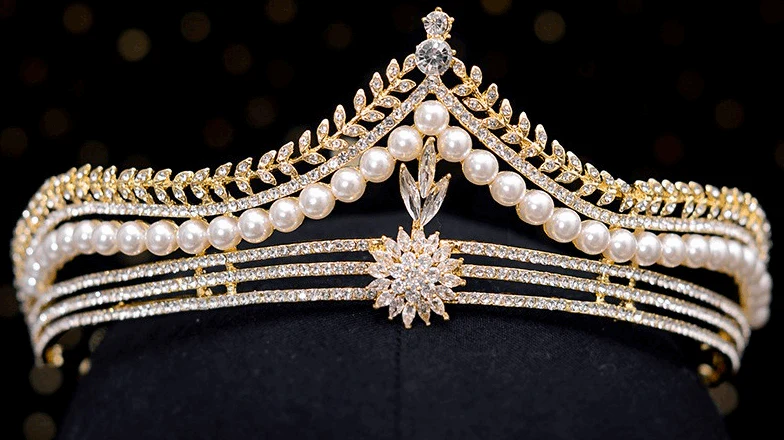 Questa tiara è una bella scelta per un copricapo di dichiarazione di variazione! Ricoperto di strass trasparenti e accentato con perle finte.