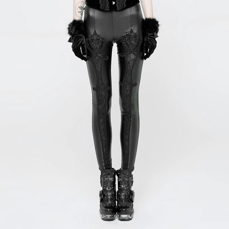 Descrizione : Ora ecco un paio di leggings che delizieranno il cuore di ogni Goth Punk che ama la combinazione di pelle e pizzo. I leggings in ecopelle oleosa hanno un bellissimo inserto in pizzo che corre lungo il capo dall’anca all’orlo. La pelle sintetica è elastica e morbida che rende questi leggings deliziosi da indossare. Quando il pizzo è nella mente questo è quello che ti serve.