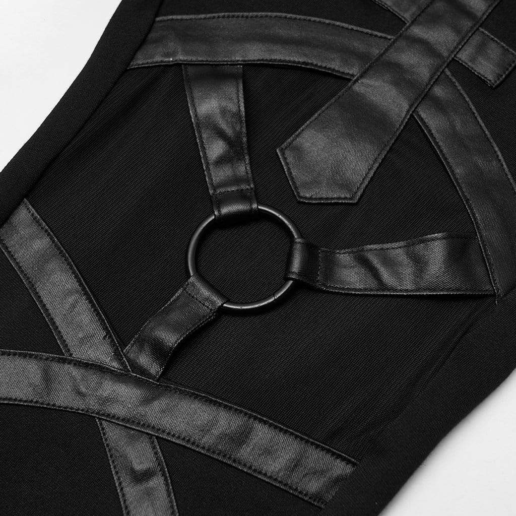 I leggings sono un altro capo immancabile nel guardaroba di ogni donna. Inoltre, sono una delle basi per Stile gotico abiti e abiti. I leggings neri sono stati più strettamente associati a questo stile perché sono intriganti e alla moda. Questo paio di leggings è unico nel suo design. È dotato di una rete trasparente posizionata strategicamente proprio dove le donne indossano le giarrettiere. Fornisce una stampa di cinture ad incastro, seguita da una spada incrociata.
