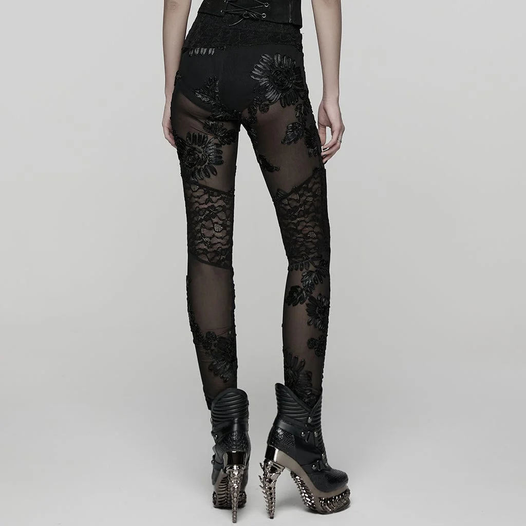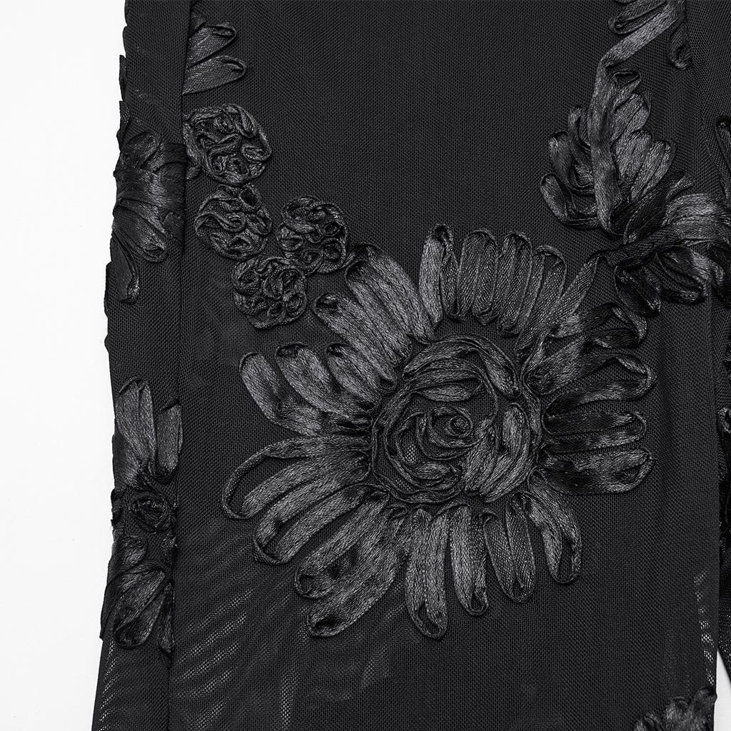I grappoli di fiori tridimensionali sulla rete sono come fiori segreti che sbocciano silenziosamente nella notte. Ogni fiore sembra portare con sé antiche leggende del regno gotico, sussurrando un’oscura e misteriosa storia d’amore tra la pelle e il tessuto.