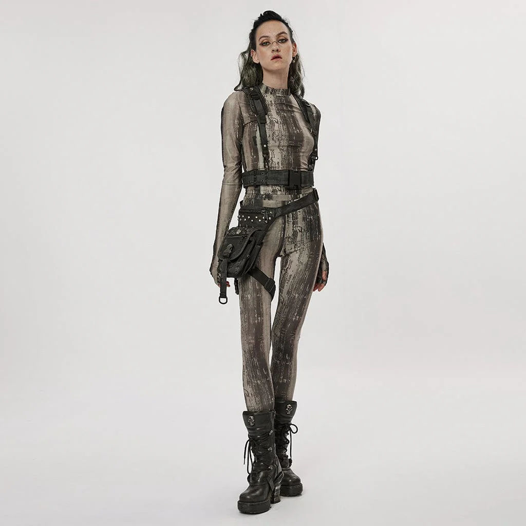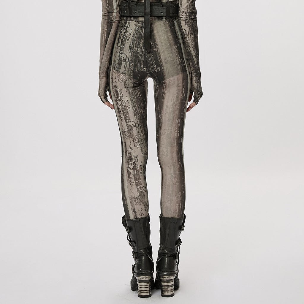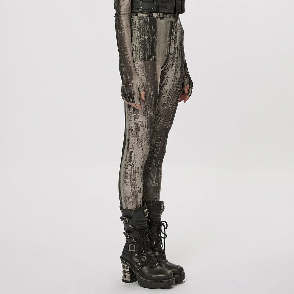 Leggings in rete tinta unita grunge da donna
