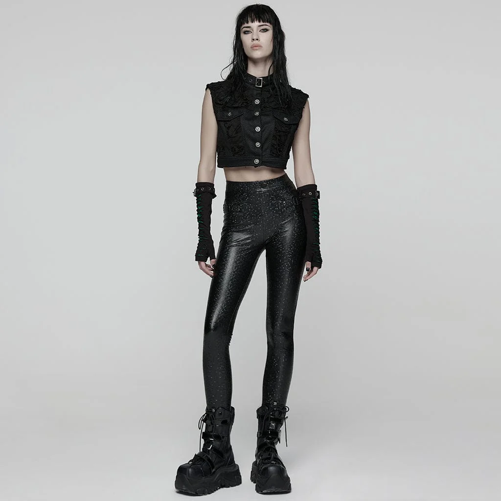 La vestibilità slim delinea i contorni delle gambe, mentre i dettagli dei rivetti aggiungono un tocco punk ribelle, esprimendo un atteggiamento personalizzato.