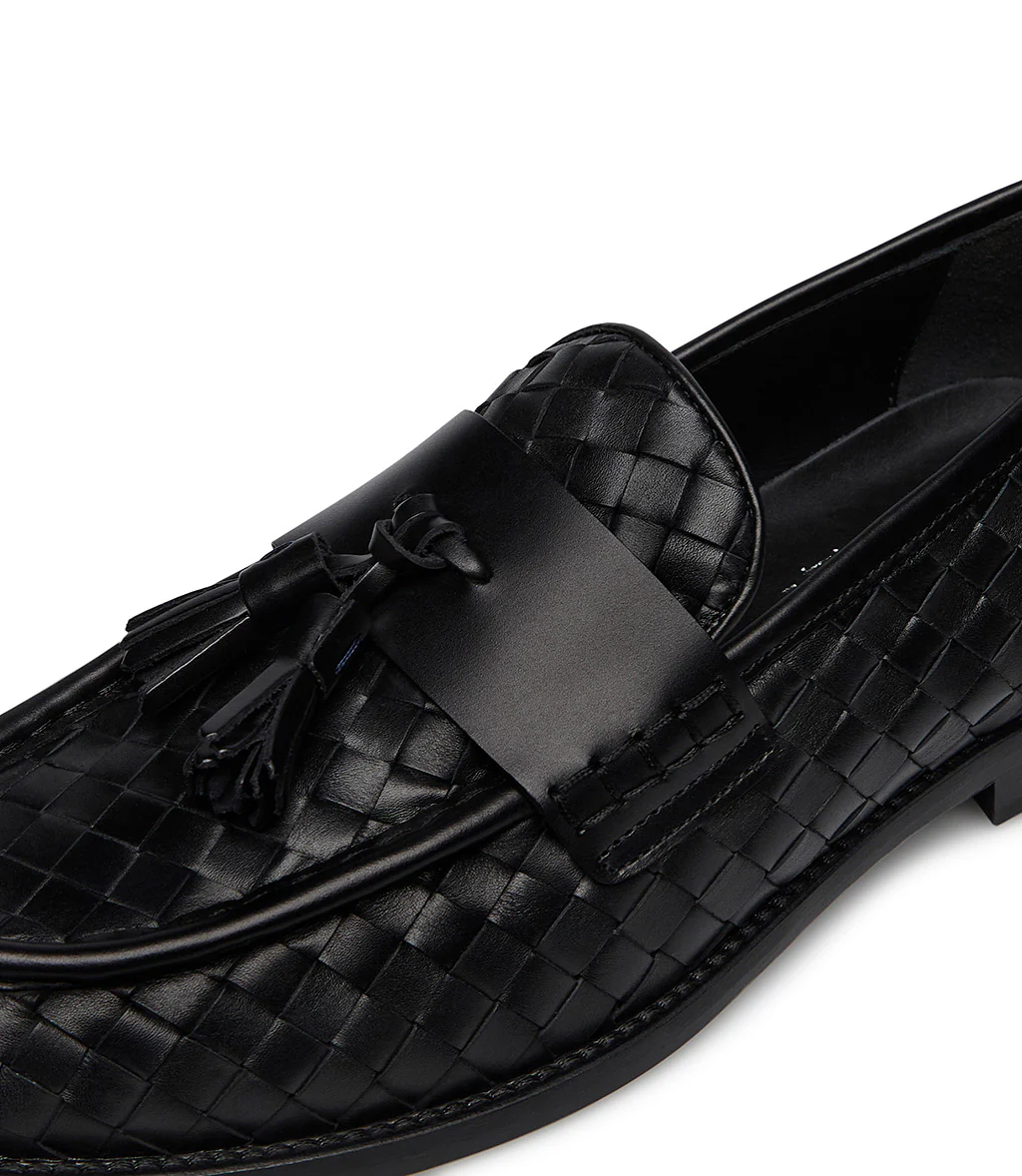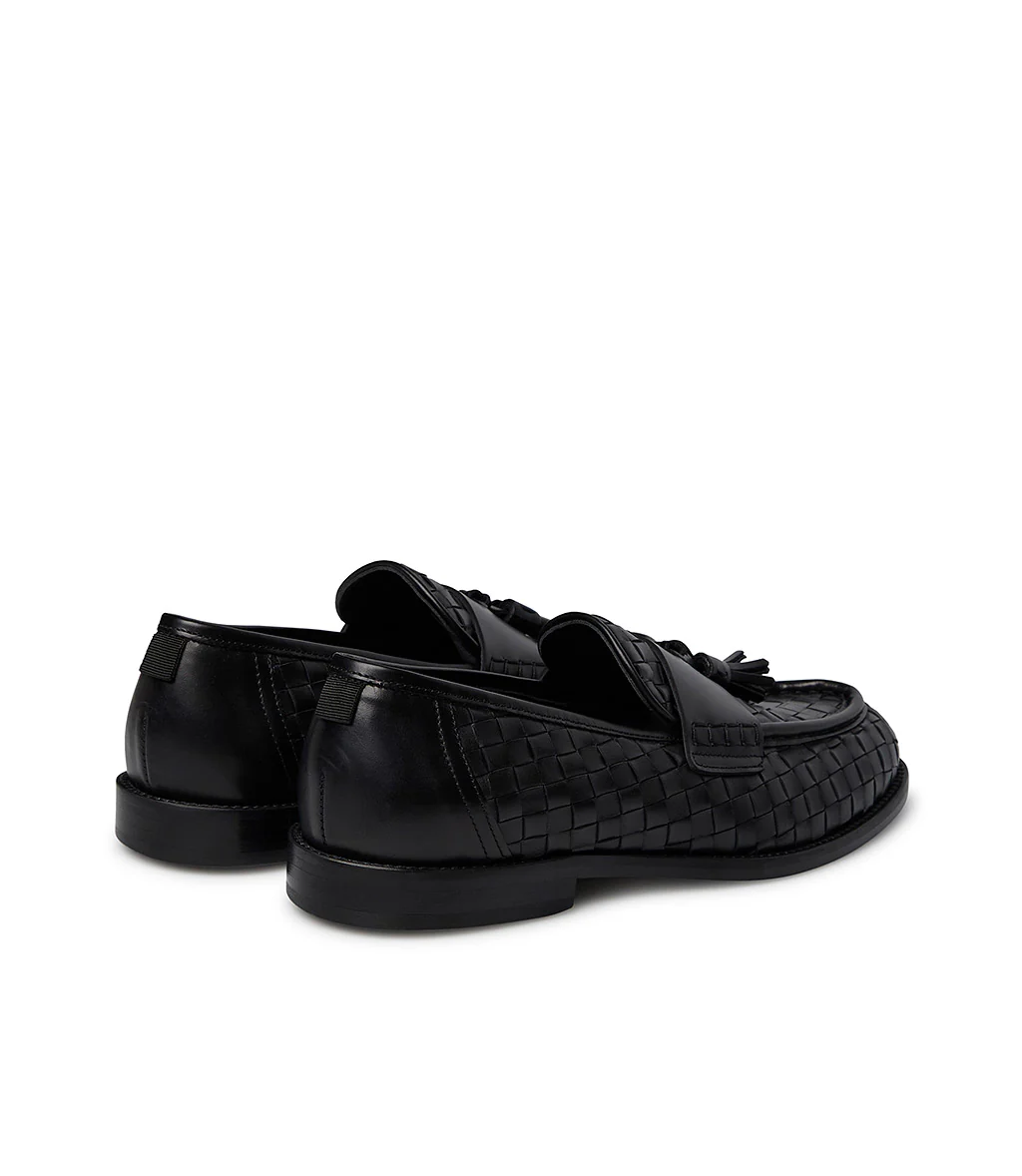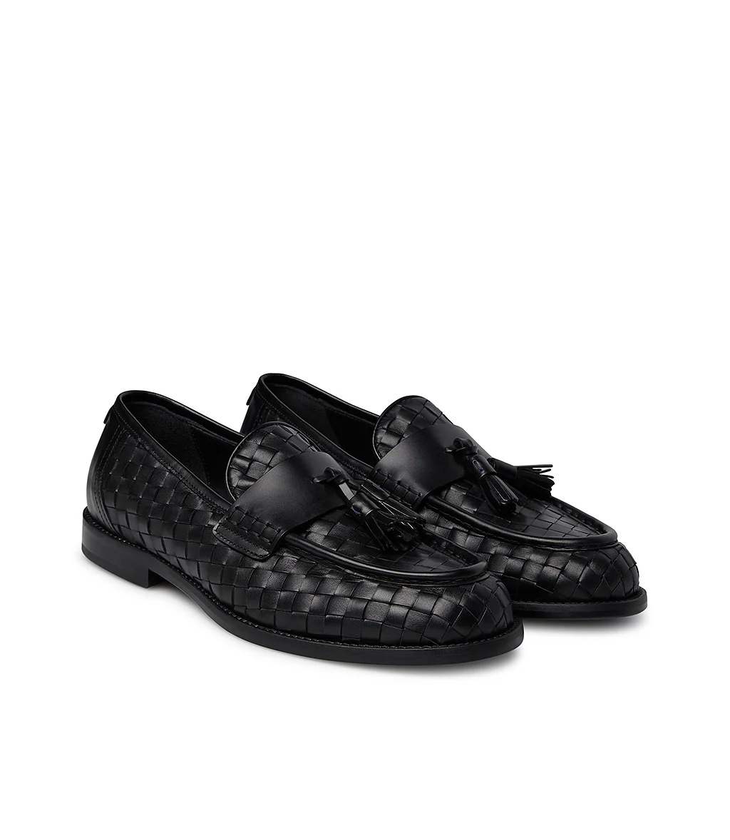 Loafer in vitello intrecciato nero con nappine