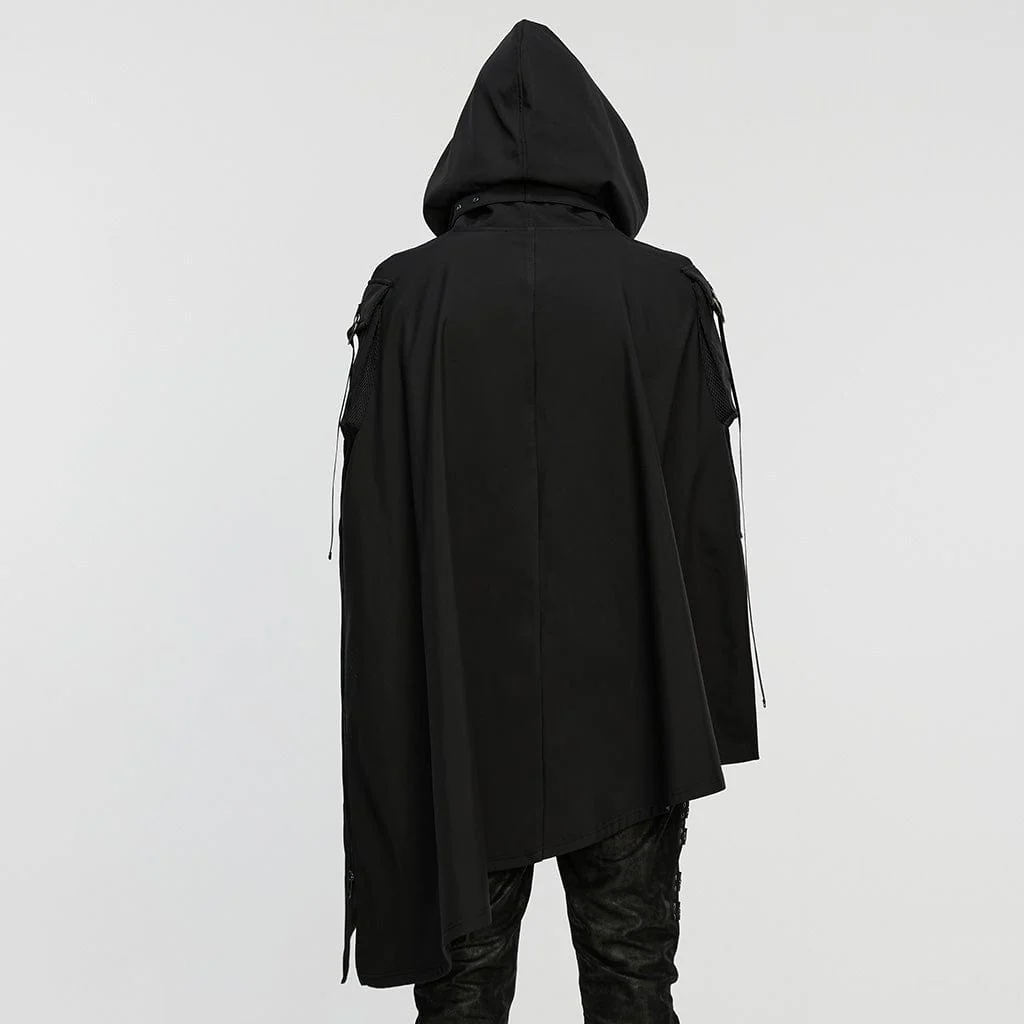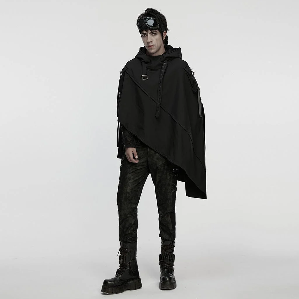 Mantello con cappuccio e fibbia irregolare punk da uomo