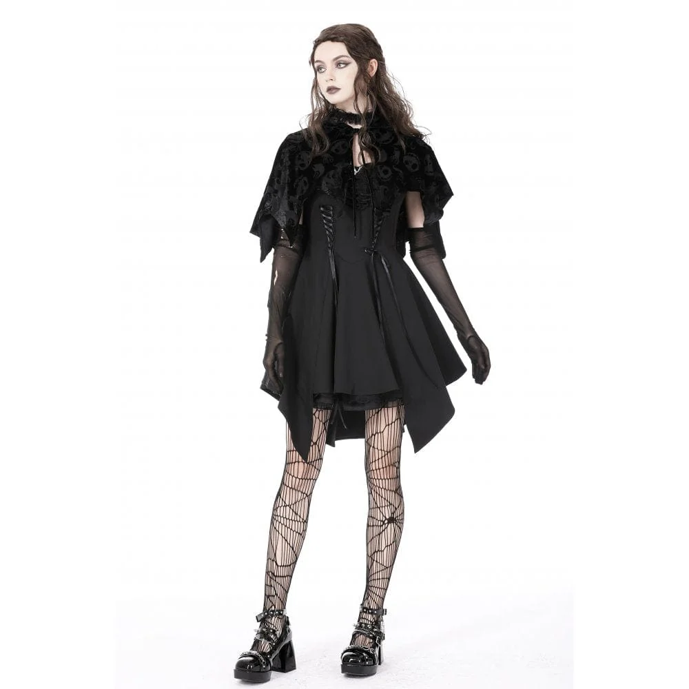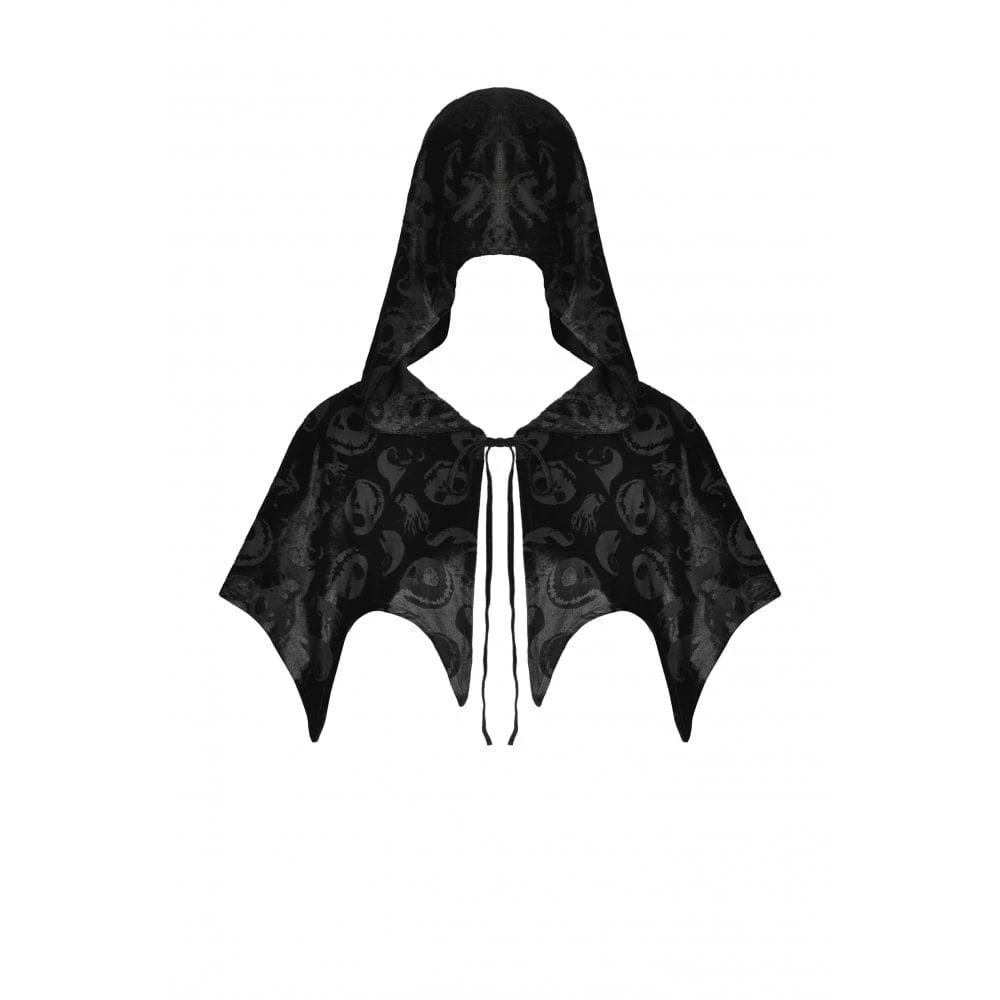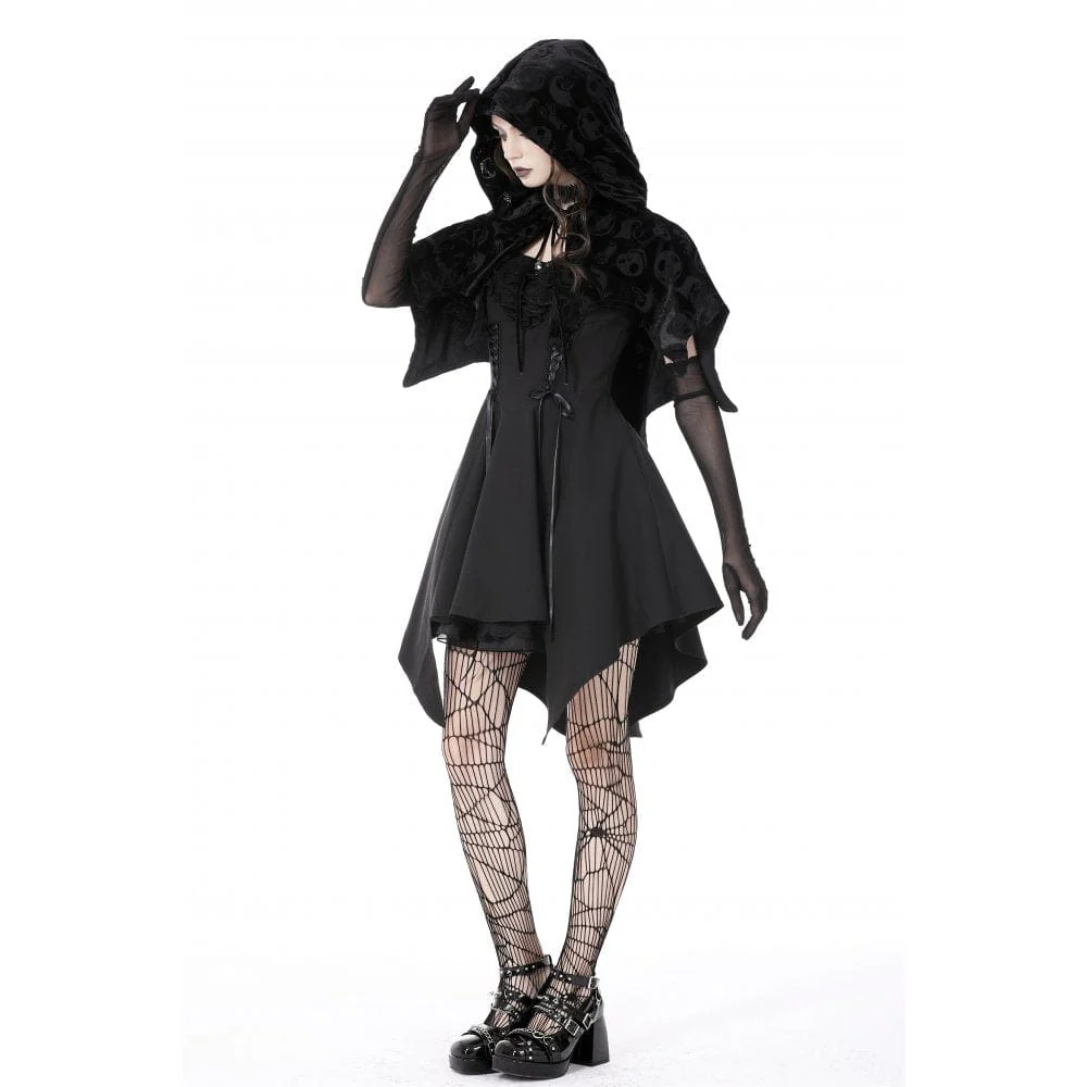 Mantello da donna in velluto con stampa teschio gotico con cappuccio