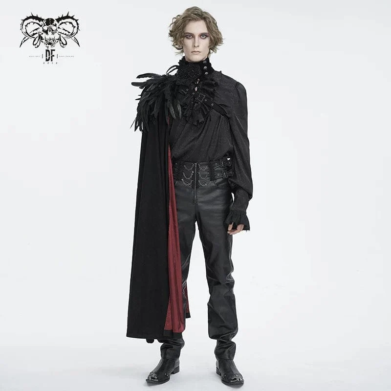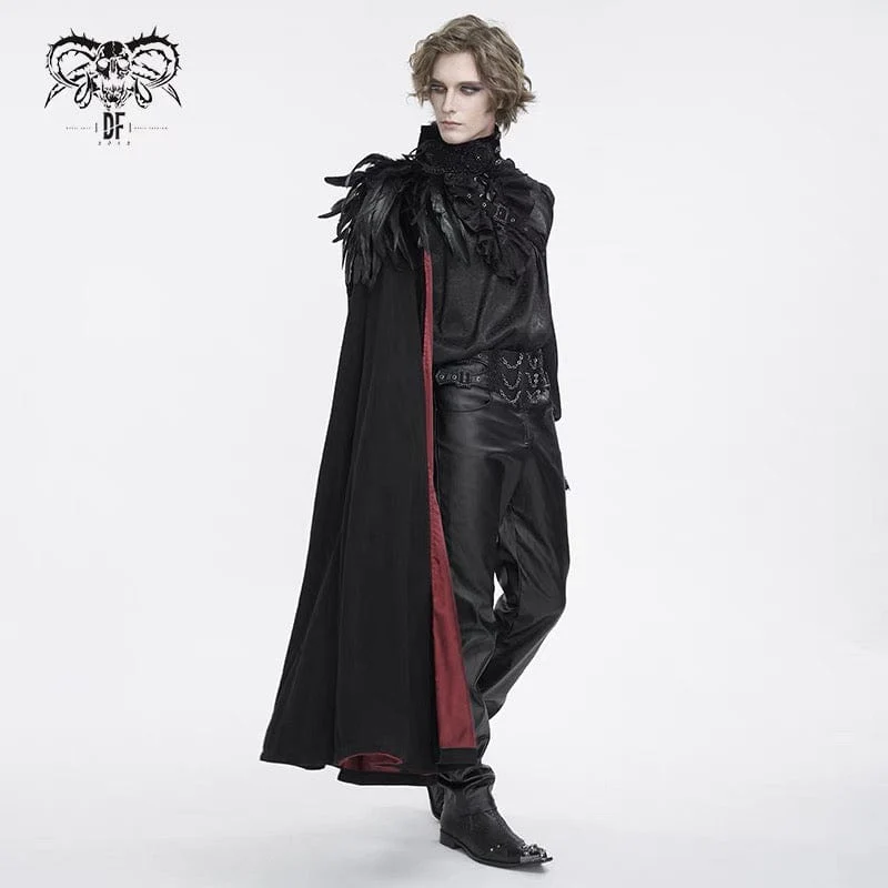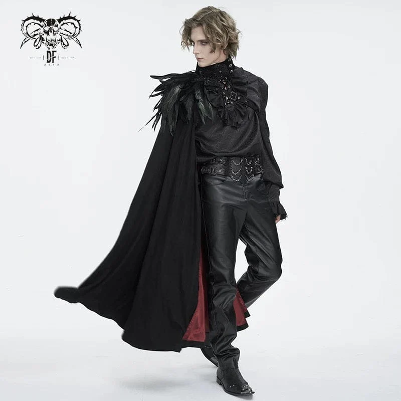 Fai un’audace dichiarazione gotica con il mantello di piume con colletto rialzato gotico da uomo, un pezzo sorprendente che trasuda eleganza oscura e fascino drammatico. Realizzato con meticolosa attenzione ai dettagli, questo mantello è progettato per elevare il tuo ensemble gotico a nuovi livelli.
