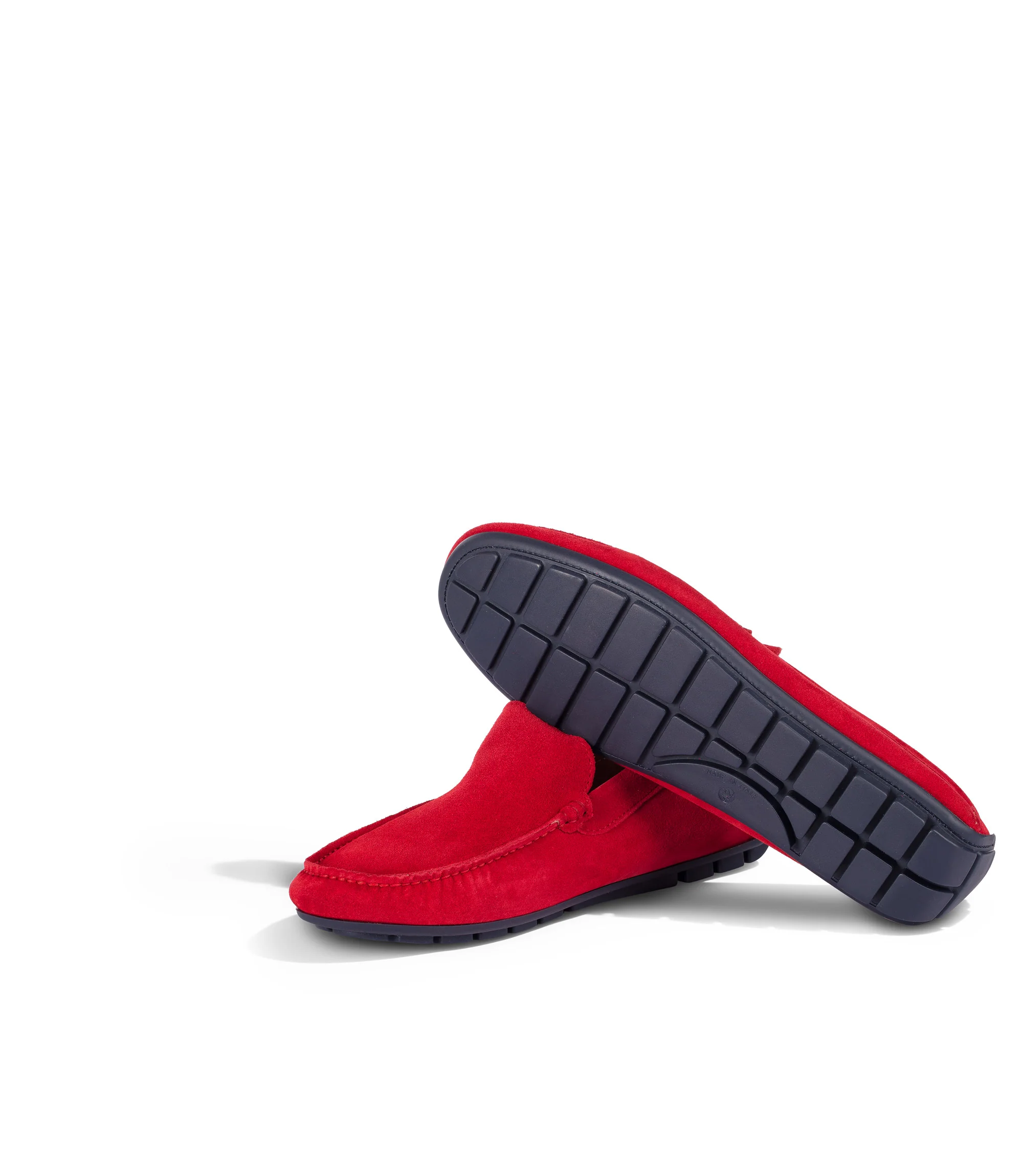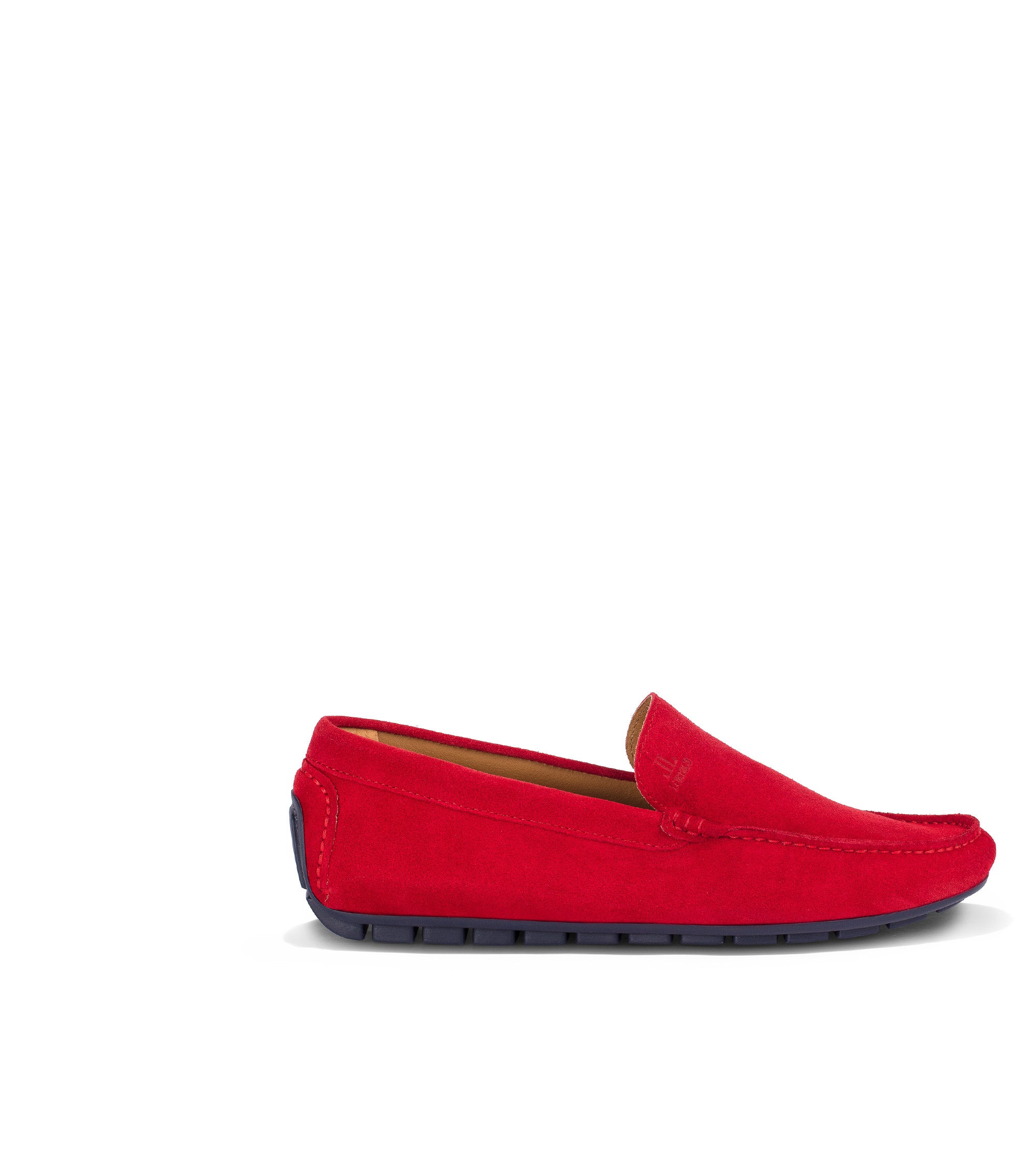 Realizzati in Italia in pregiata pelle scamosciata rossa, i nostri mocassini artigianali presentano una punta a mandorla arrotondata, impeccabili cuciture tono su tono, logo e monogramma impressi sul davanti e sula flat con gommini neri. Abbinali a jeans e shorts durante la bella stagione.