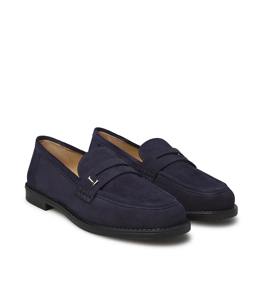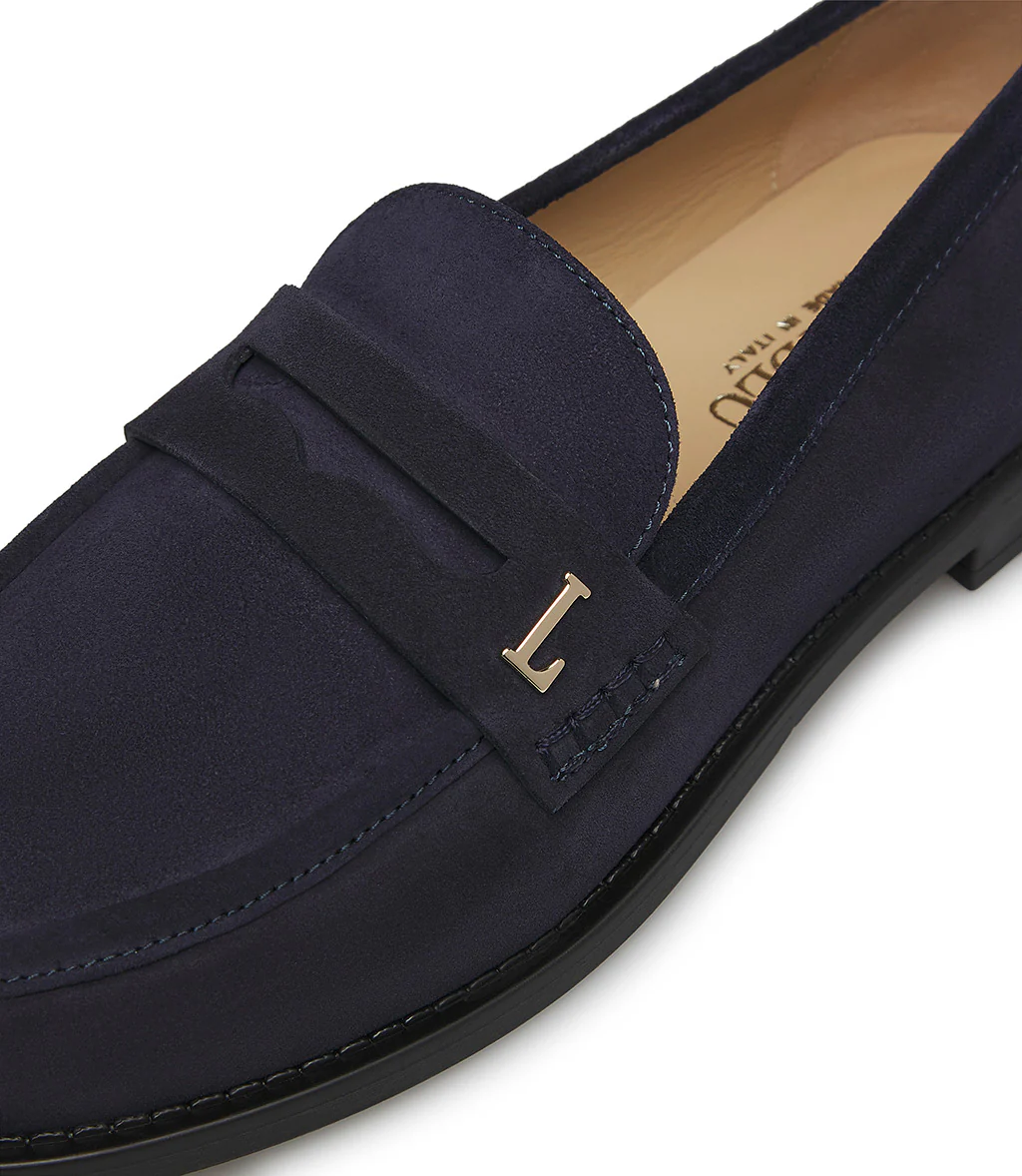 I nostri confortevoli mocassini presentano una silhouette impeccabile e senza tempo. Realizzati in Italia in pregiato camoscio blu, spiccano grazie al logo Loriblu in metallo dorato sulla traversina. Impeccabili le cuciture artigianali tono su tono sulla punta arrotondata. Poggiano su di una suola in cuoio, sono l’accessorio ideale per l’outfit giornaliero ed elegante.