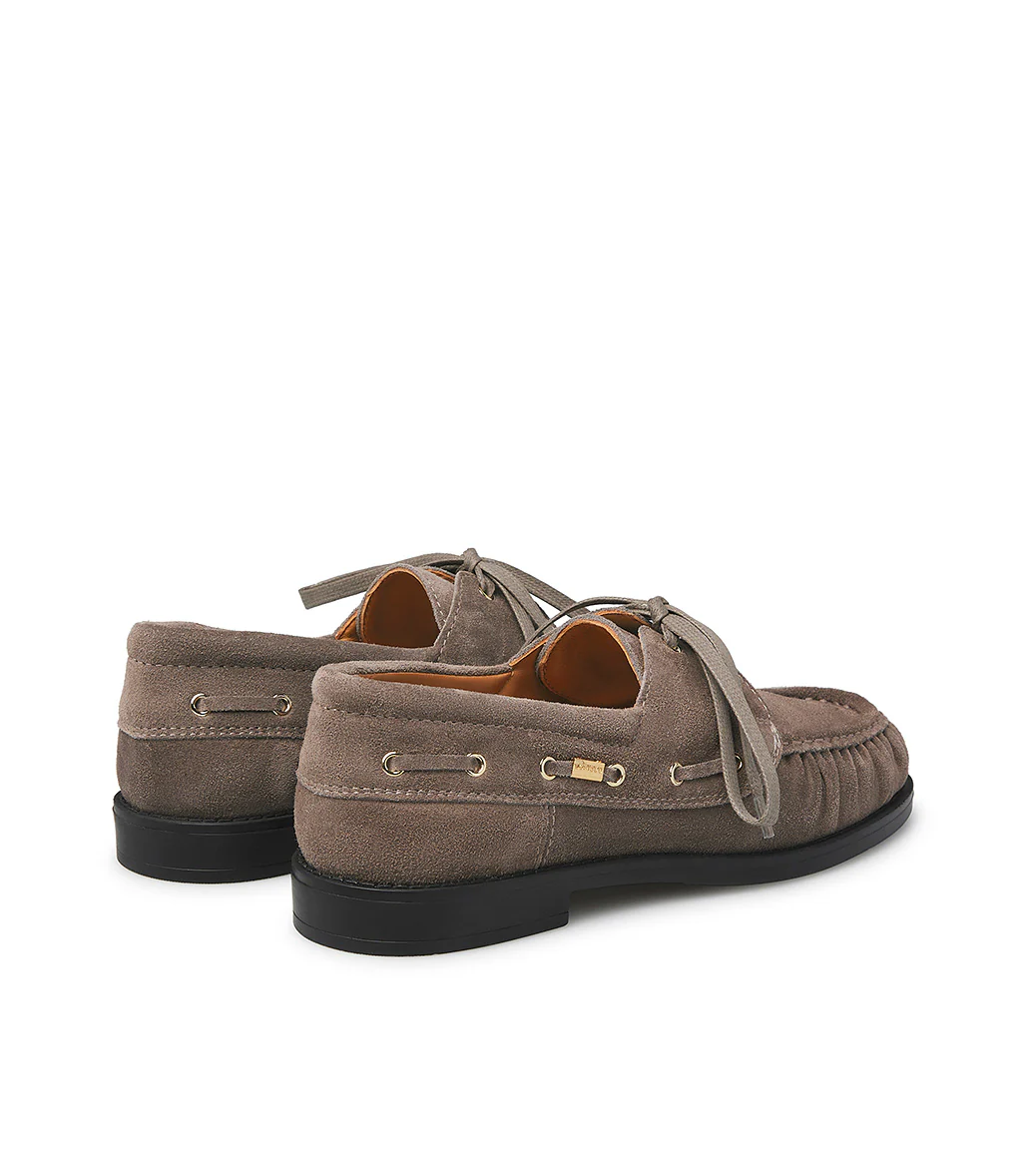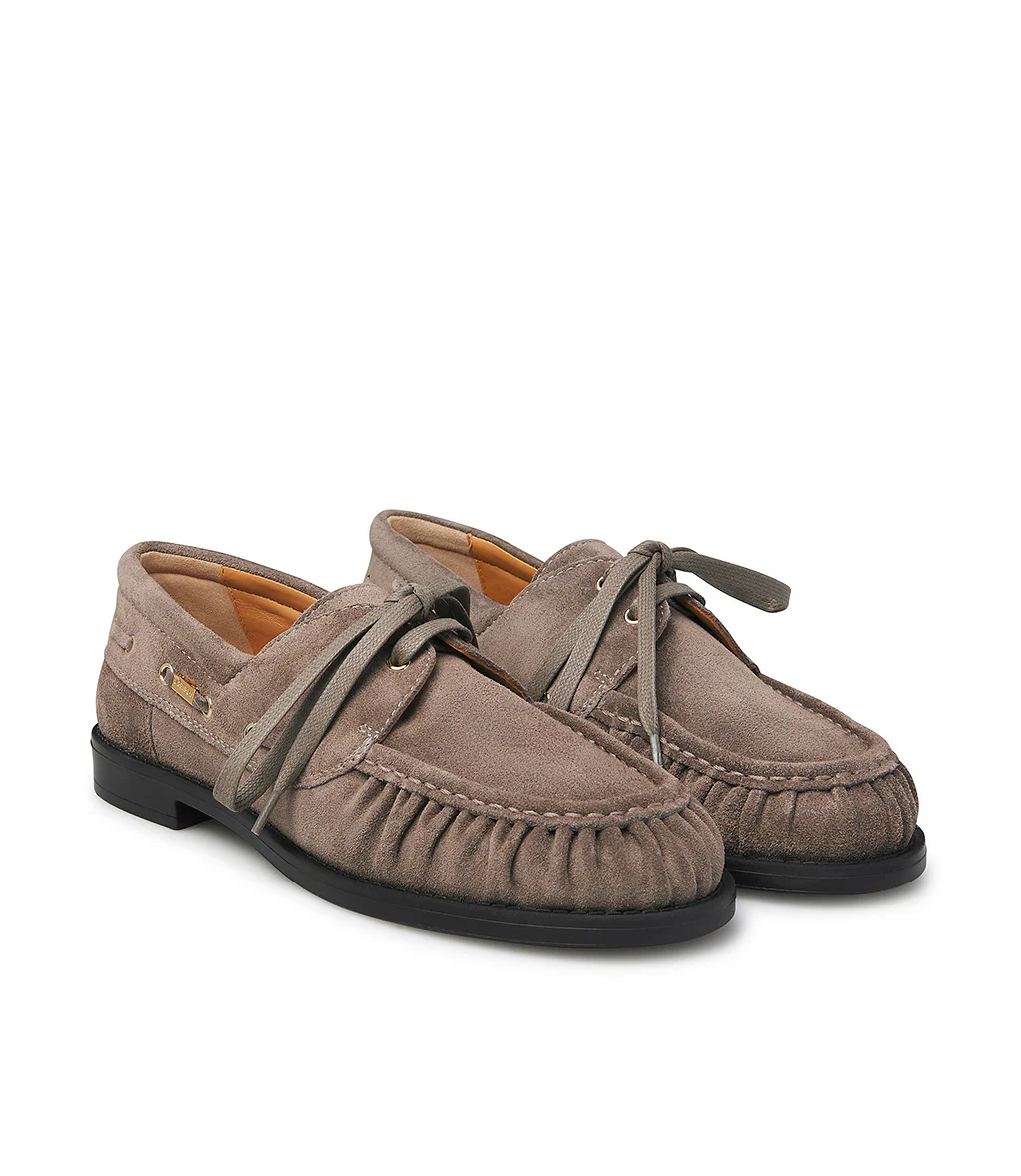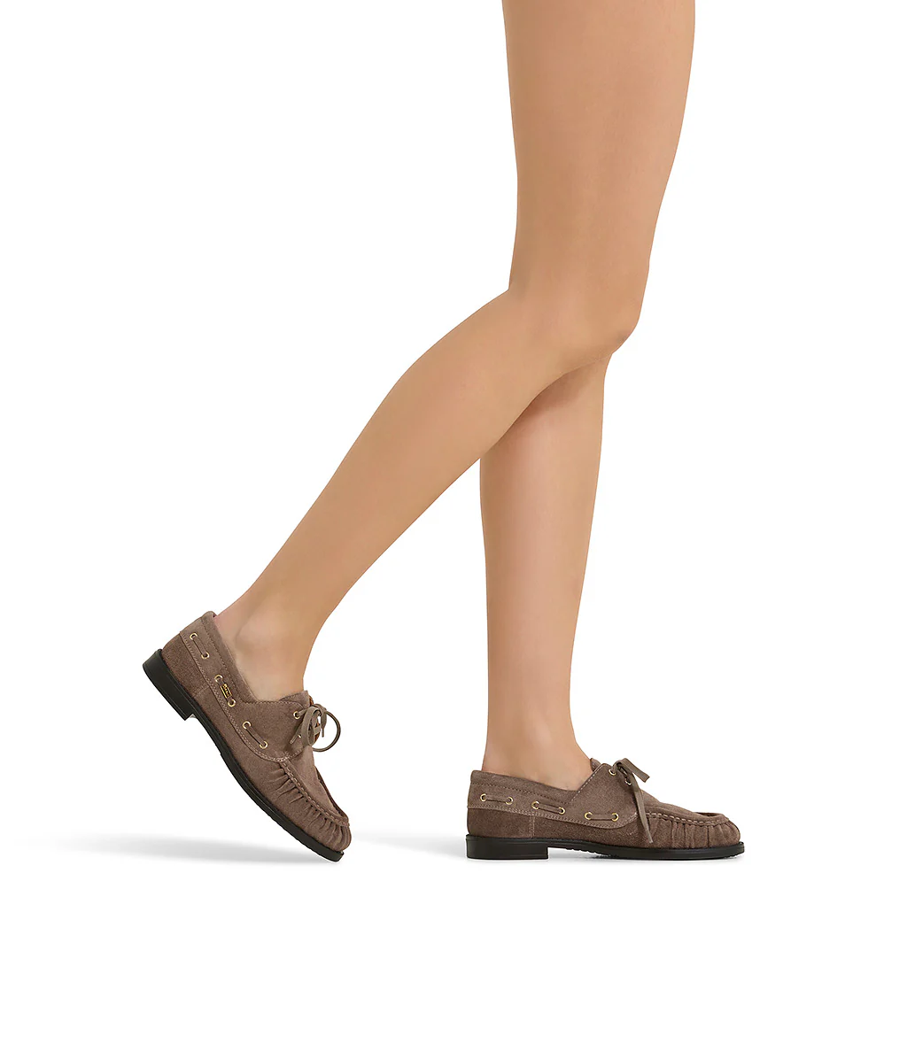 Realizzati in Italia in pregiato camoscio nuance creta, i nostri confortevoli mocassini versione barca, presentano una silhouette impeccabile e senza tempo. Poggiano su di una suola in gomma e rivelano una punta arrotondata dalla linea arricciata sottolineata dalla cucitura in rilievo. Ideale per l’outfit giornaliero.