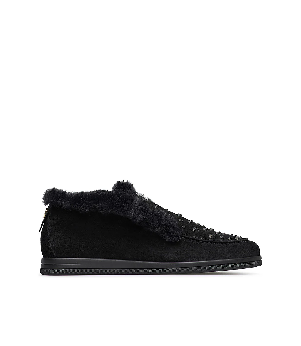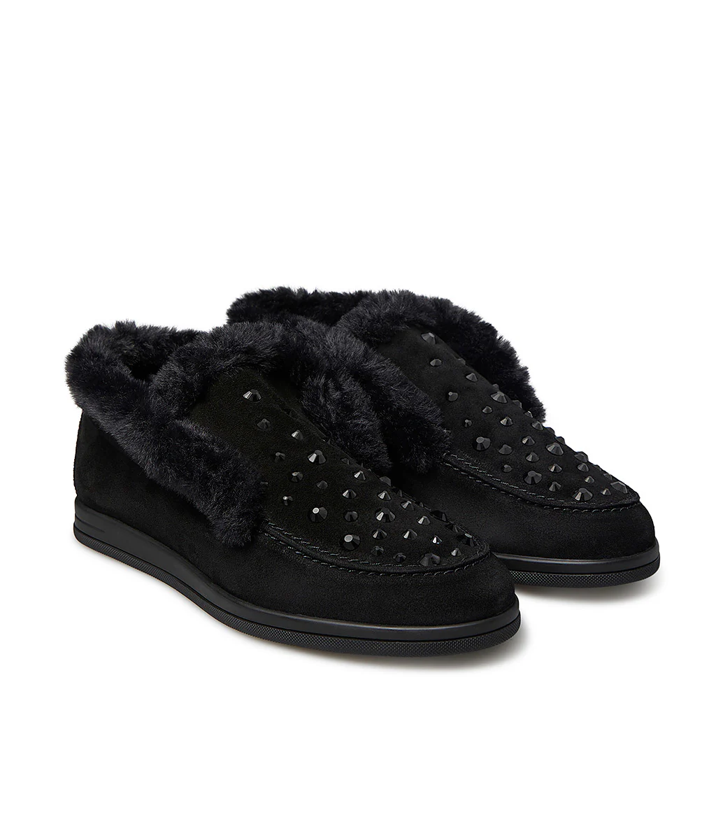 Mocassino in camoscio nero con cristalli