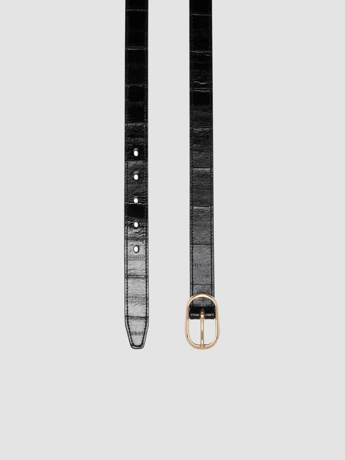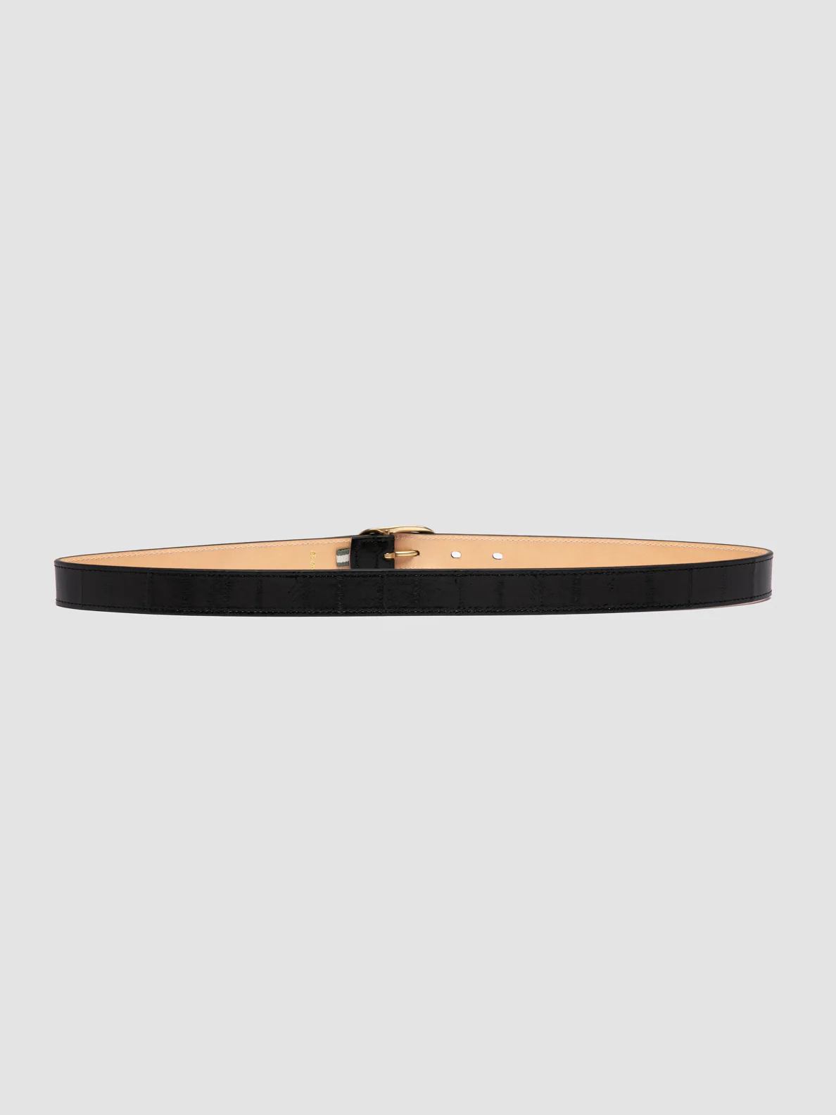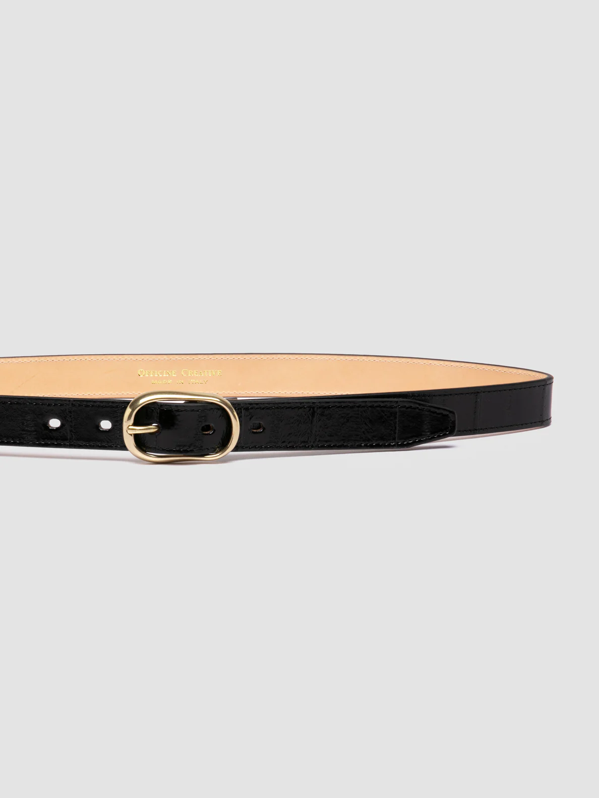 La cintura OC Strip 099 è realizzata a mano in pelle nera lucida con una texture dall’effetto ruvido che ne esalta il fascino sofisticato. La fibbia in galvanica oro aggiunge un elemento di eleganza senza tempo, mentre il lato interno è impreziosito dal discreto logo con caratteri stampati. CODICE: OC STRIP/099 ANGUILLA NERO