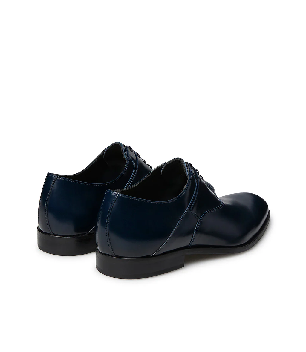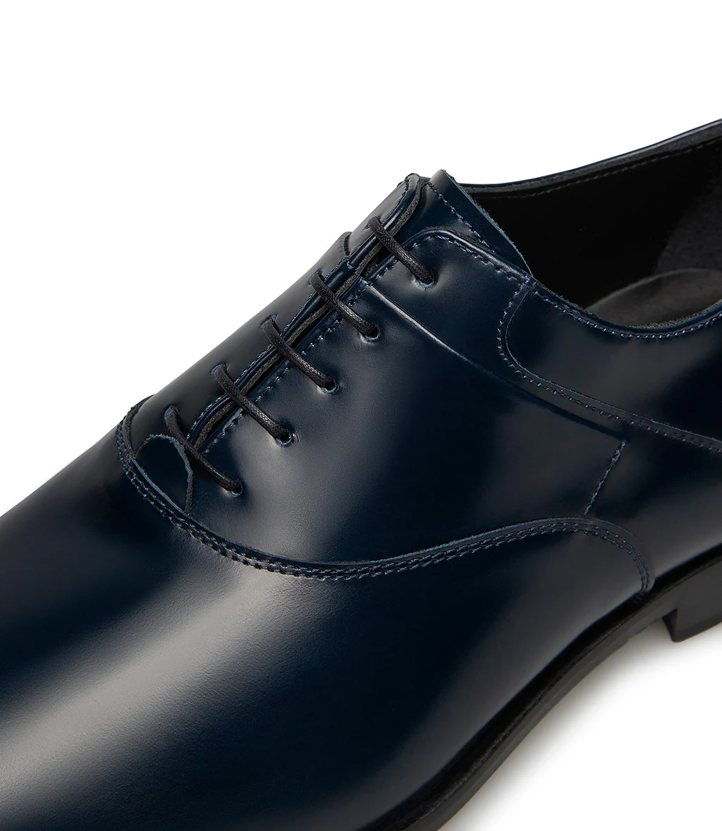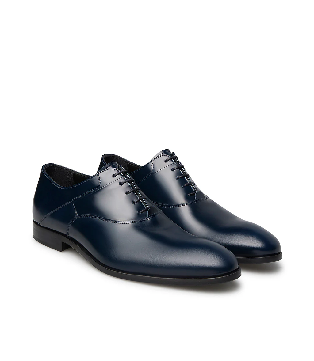 Realizzate con cura in Italia in pregiato vitello spazzolato blu notte, le nostre stringate oxford presentano una punta a mandorla arrotondata, lacci sottili cerati, fodera e soletta in pelle e una suola in cuoio. Eleganti e intramontabili, sono perfette da abbinare a completi sartoriali.
