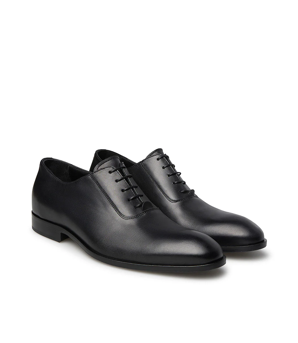 Realizzate in pregiato vitello nero, queste oxford sono le scarpe perfette per completare i tuoi outfits più eleganti. Sono realizzate con cura in Italia e presentano punta a mandorla, chiusura frontale con lacci sottili cerati e suola in cuoio.