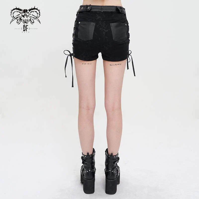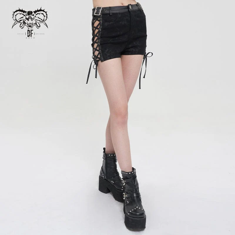 Pantaloncini da donna con fibbia punk strappy tie-dye