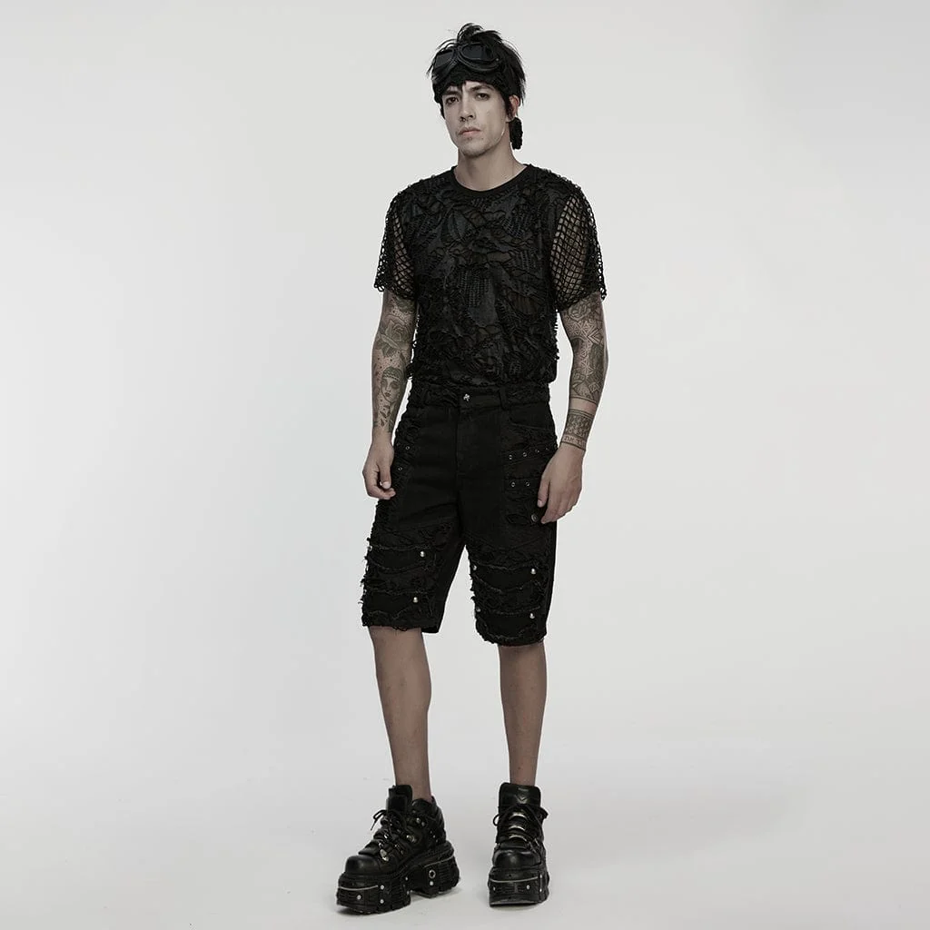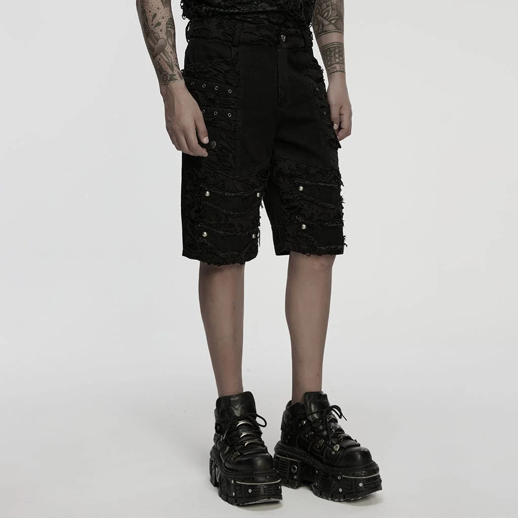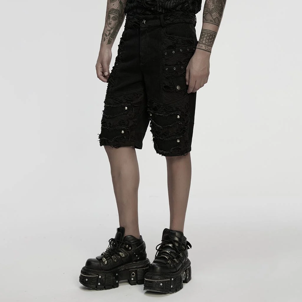 Ribelli e senza remore, i pantaloncini da uomo Punk Eyelet Straps Ripped Shorts incarnano la pura energia punk rock con un tocco moderno e street. Realizzati in denim elasticizzato, questi pantaloncini avvolgono il corpo con una silhouette aderente, offrendo struttura e comfort per tutto il giorno senza limitare i movimenti.