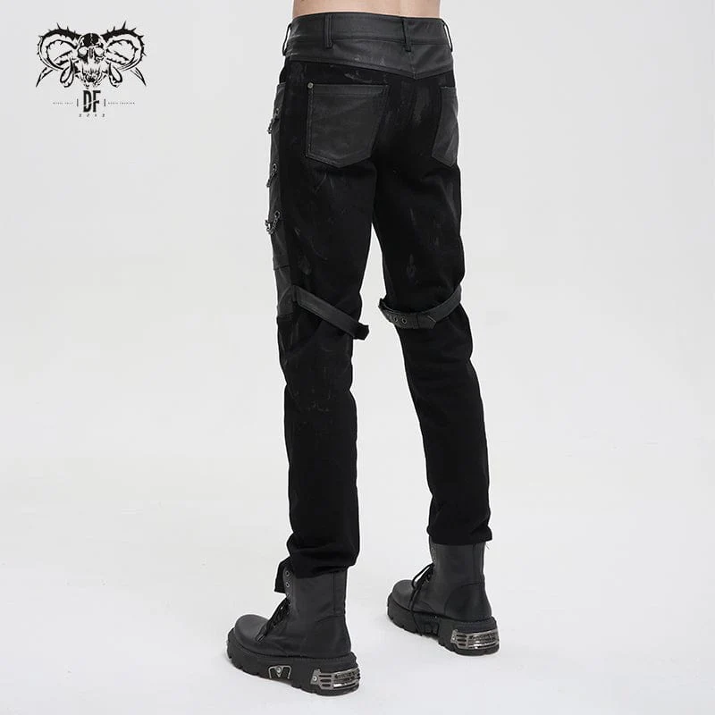 Pantaloni da uomo in ecopelle invecchiata gotica