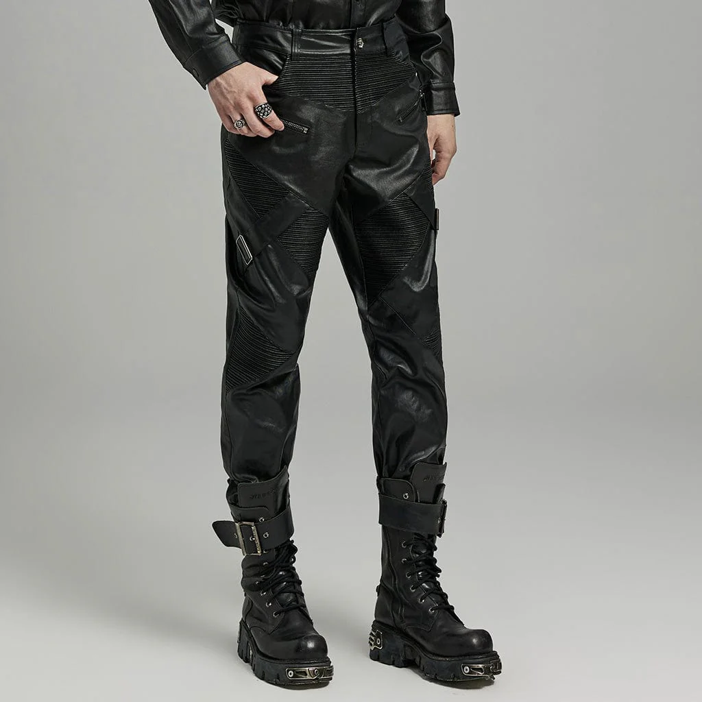 Migliora il tuo look di ispirazione punk con i nostri pantaloni in ecopelle plissettati con cerniera punk da uomo, realizzati in tessuto gommato elastico di alta qualità per stile e comfort. Questi pantaloni sono progettati per fare una dichiarazione audace abbracciando allo stesso tempo lo spirito ribelle della moda punk.