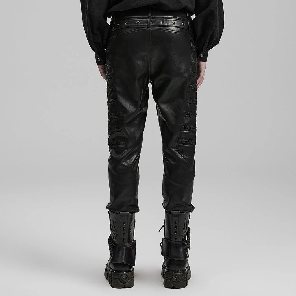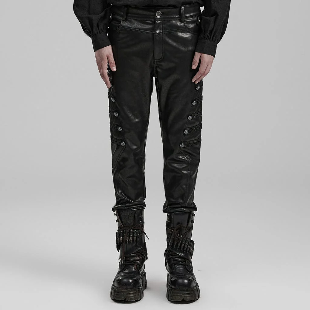 I pantaloni sono realizzati in pelle scamosciata con pelle dal motivo casuale. C’è un passante decorativo sul retro con cinghie e bottoni su entrambi i lati delle cosce per creare un punk personalizzato. Pratiche tasche frontali a fessura e tasche posteriori applicate.