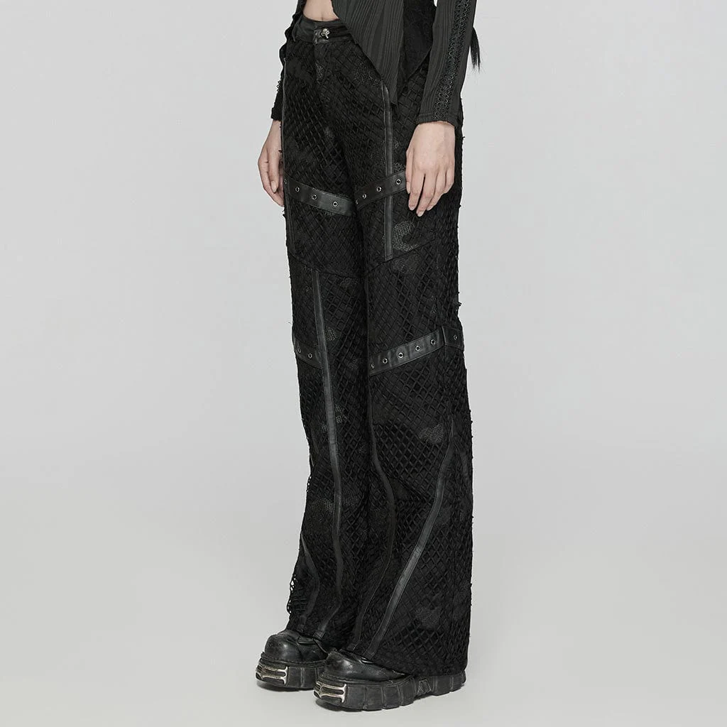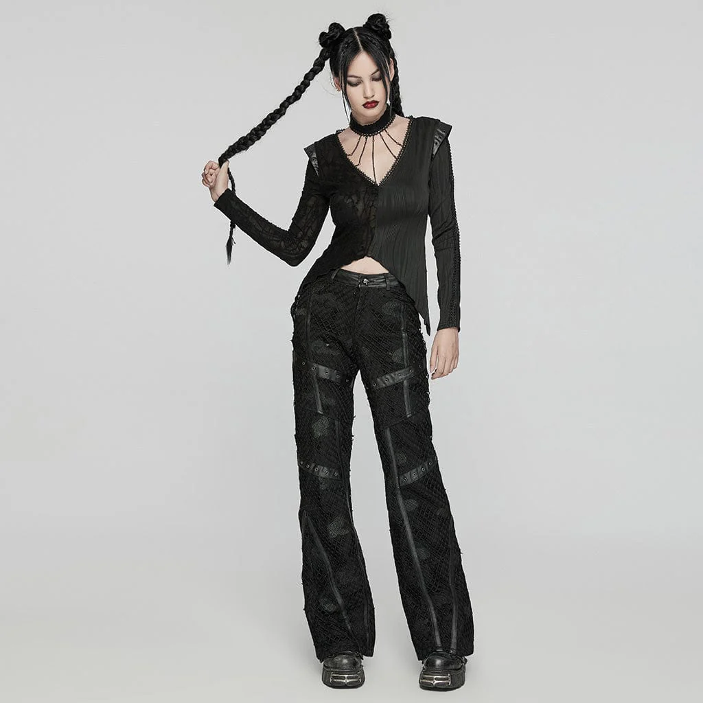 I pantaloni da donna Punk Ripped Mesh Denim Pants sono un capo audace e audace, progettato per incarnare l’essenza della moda punk con un tocco contemporaneo. Realizzati in denim twill a rete anelastico, questi pantaloni combinano una robusta resistenza con un design unico e alla moda.