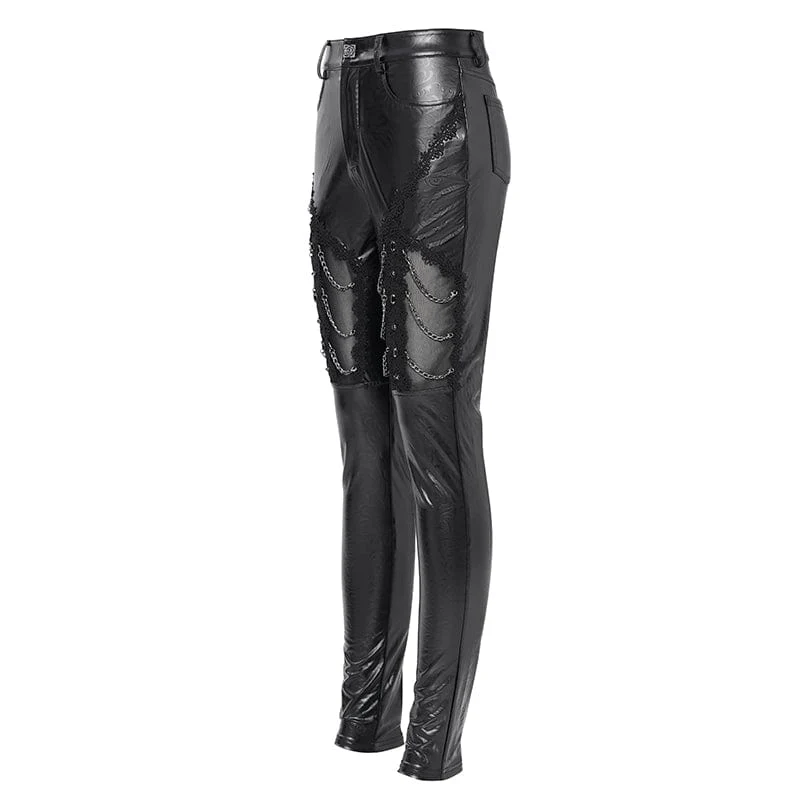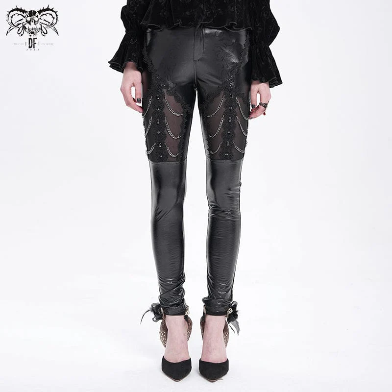 Pantaloni in similpelle con pizzo a catena gotici da donna