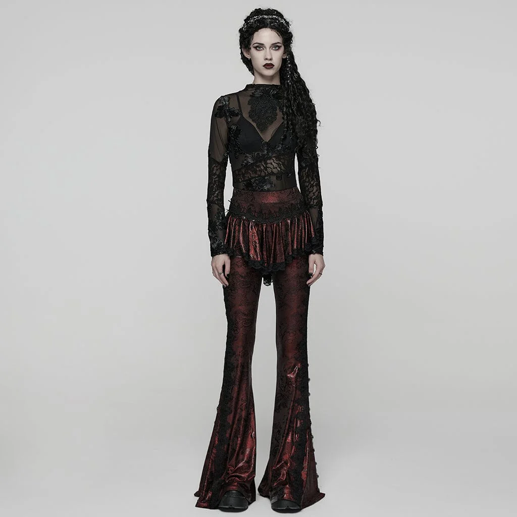Pantaloni svasati con stampa floreale gotica da donna, rossi