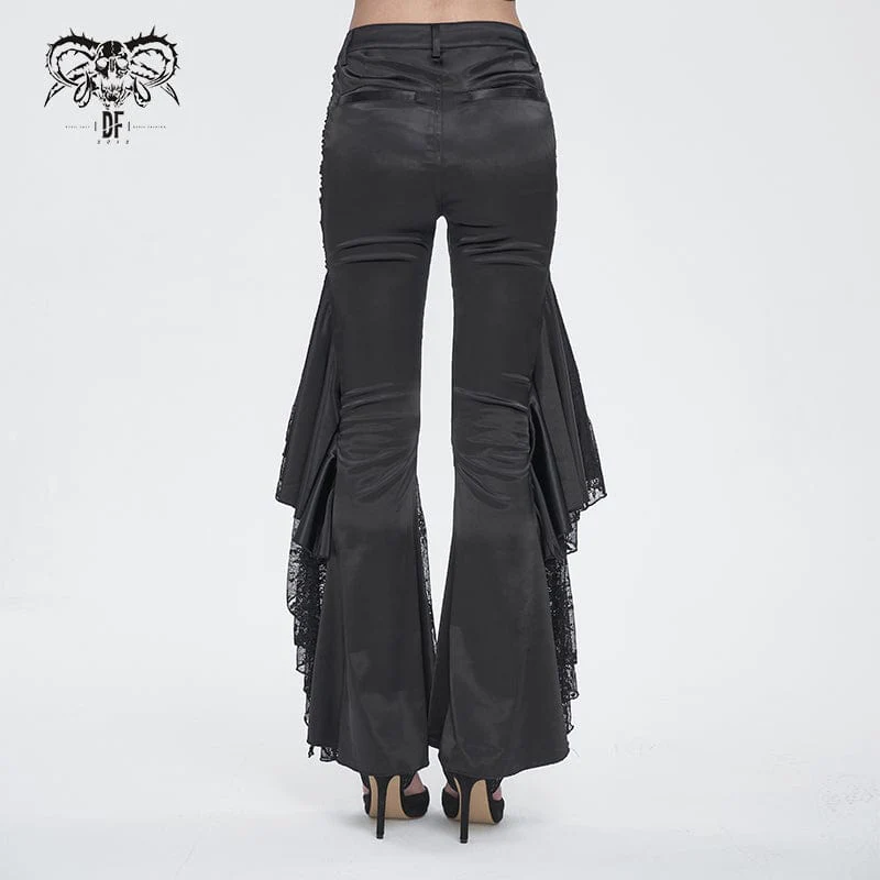 Questi graziosi pantaloni a zampa d’elefante sono realizzati in poliestere e pizzo. La parte superiore dei pantaloni è attillata, mentre la parte inferiore è decorata con pizzo floreale e orlo irregolare. Hanno un aspetto elegante, mostrano un senso di svolazzare e ballare.