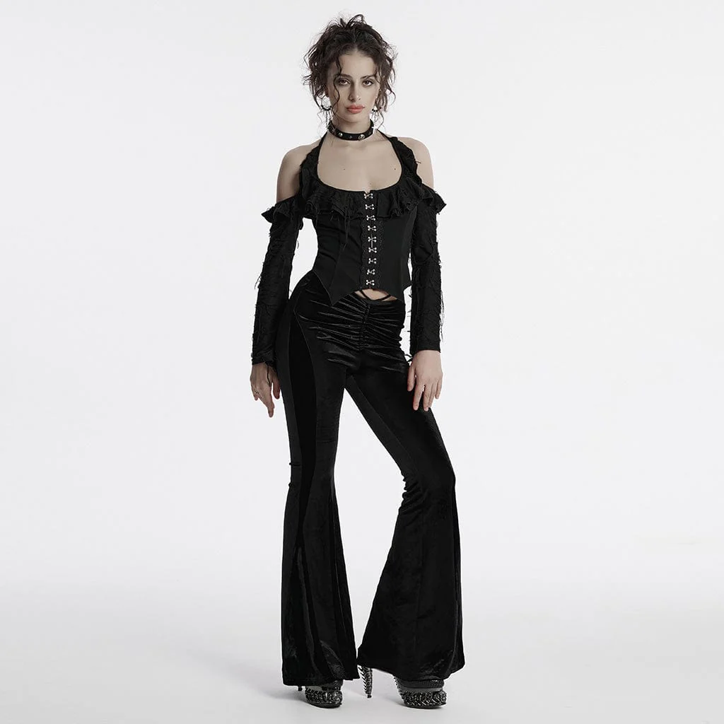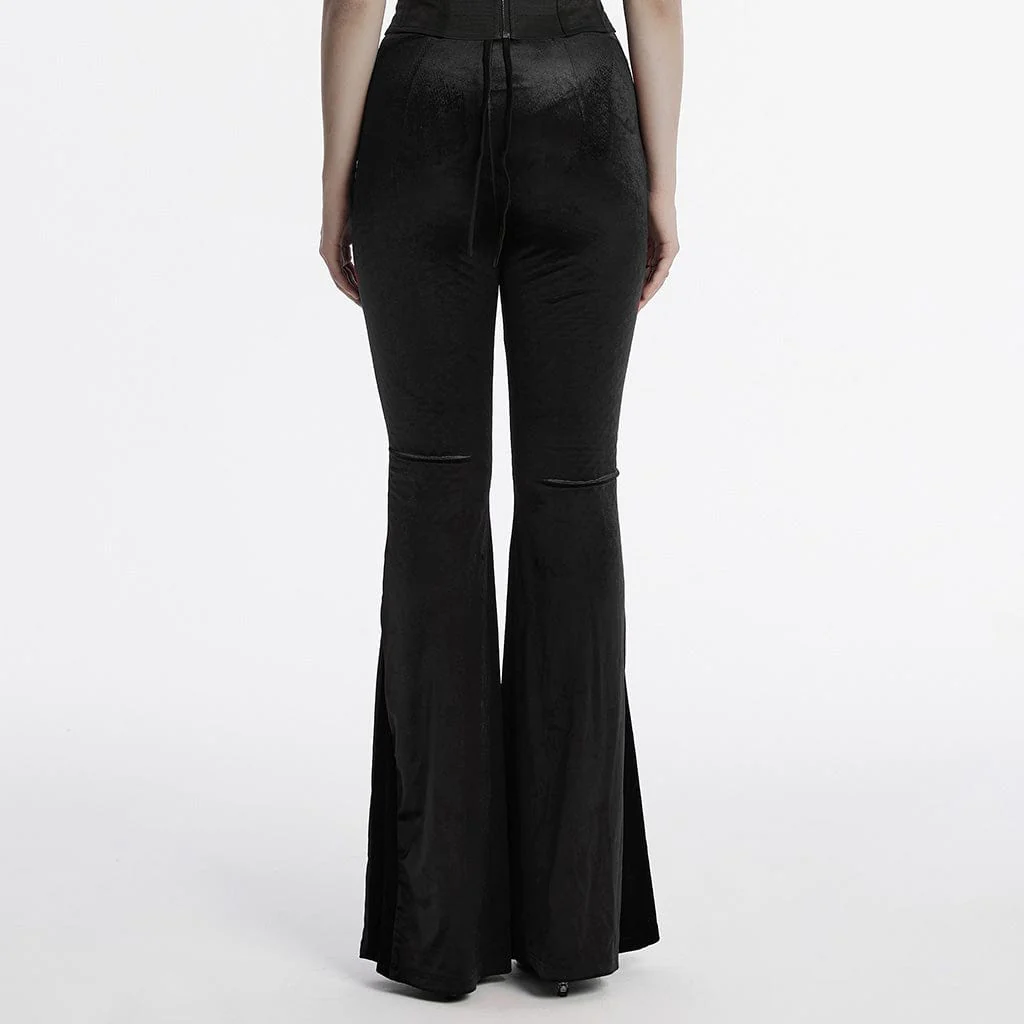 Scatena la tua eleganza dark con i pantaloni svasati in velluto con coulisse gotici da donna, un mix perfetto di fascino gotico e attitudine punk rock. Questi pantaloni svasati aderenti sono realizzati in velluto morbido ed elastico che offre sia comfort che stile, abbracciando la tua figura e consentendoti di muoverti.
