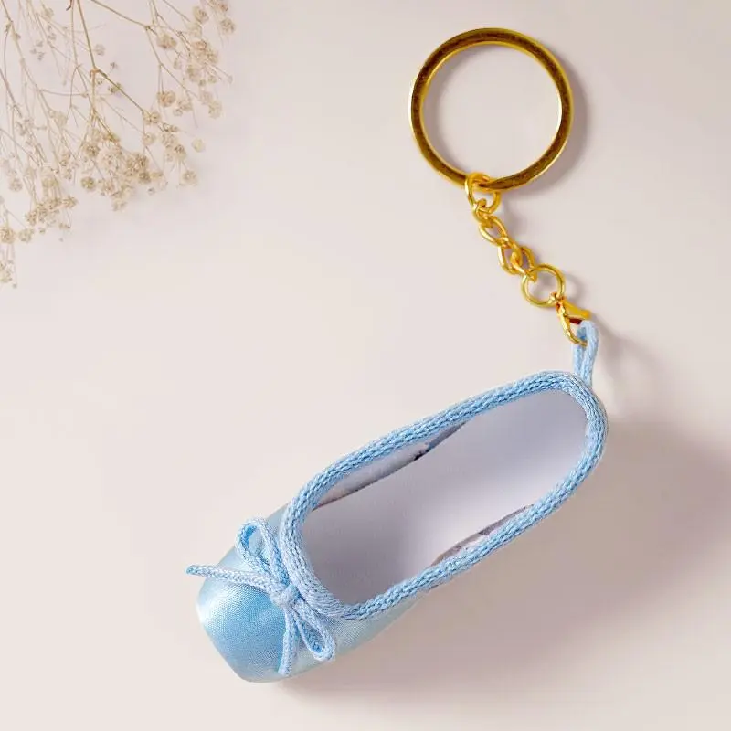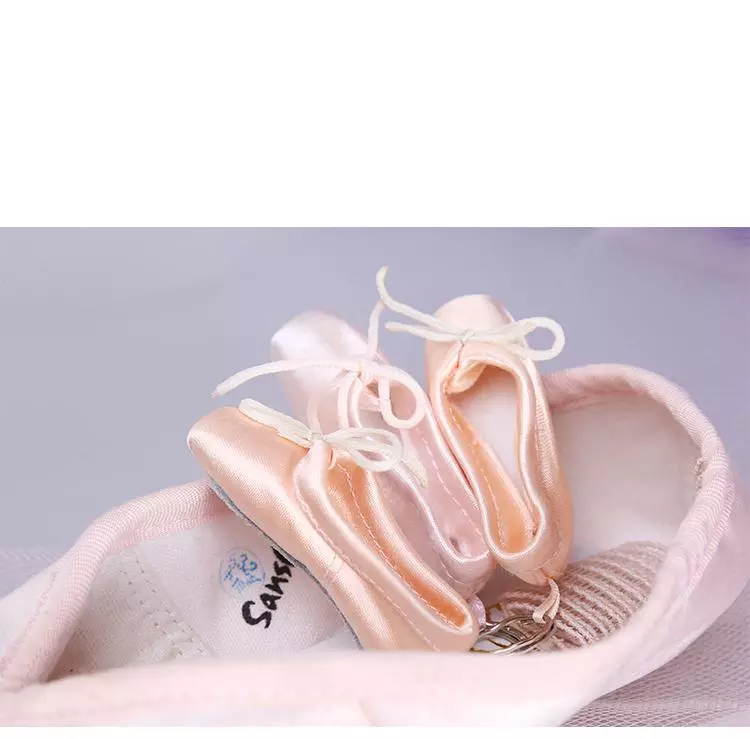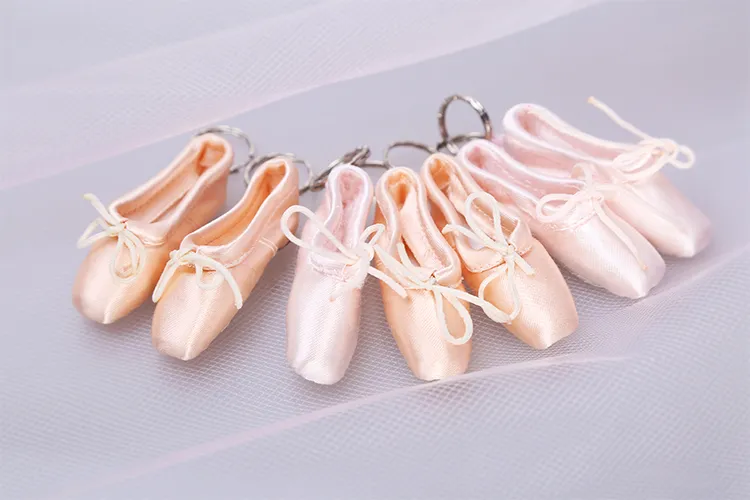 Un adorabile portachiavi con mini scarpe da punta con finitura satinata: l’accessorio perfetto per una borsa da danza.