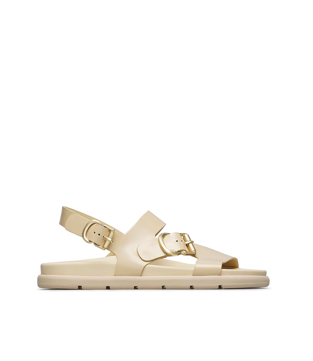 Realizzati in Italia in pregiata pelle liscia nera, i nostri sandali presentano un design versatile e senza tempo. Rivelano una punta tonda, cinturini frontali, chiusura regolabile tramite fibbia argentata sul retro, logo impresso sulla soletta e suola in cuoio con tacco basso.