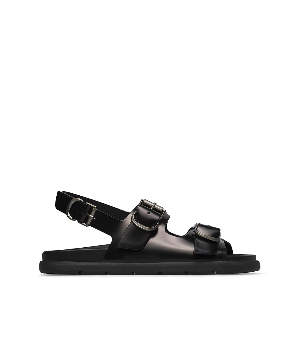 Perfetti da indossare con i tuoi outfits casual della primavera-estate, i nostri sandali slides sono realizzati interamente in Italia in pregiata pelle liscia nera. Rivelano due avvolgenti fasce incrociate, punta arrotondata, logo impresso sulla soletta e suola in cuoio con tacco basso.