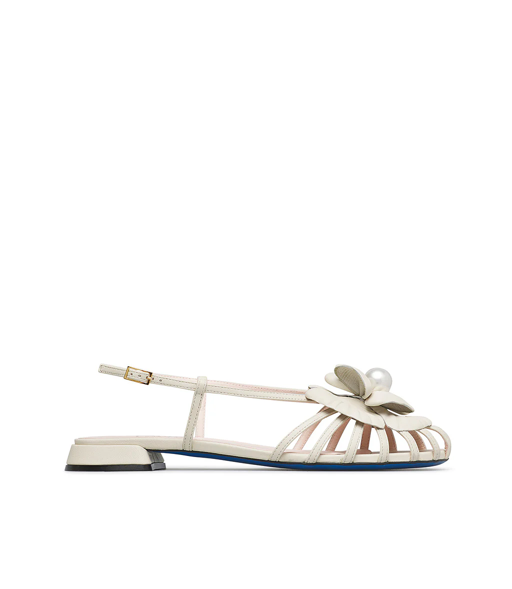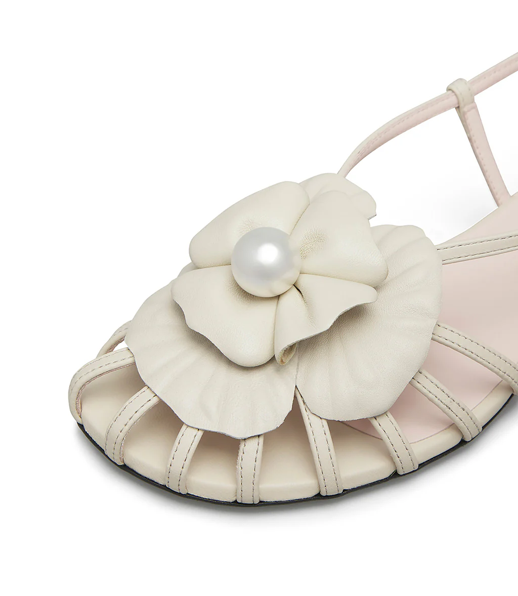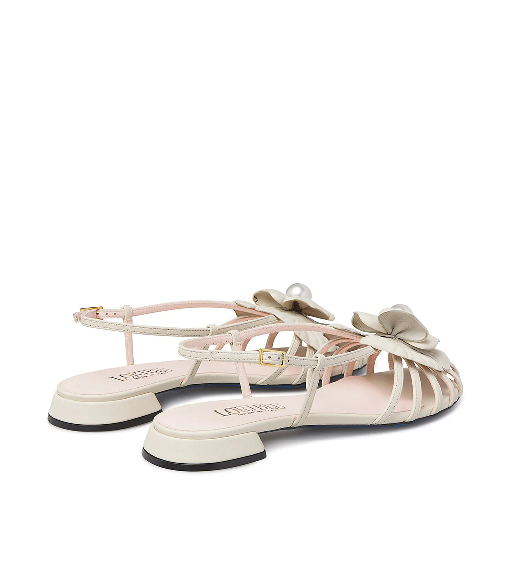 Sandalo basso in nappa avorio con firore