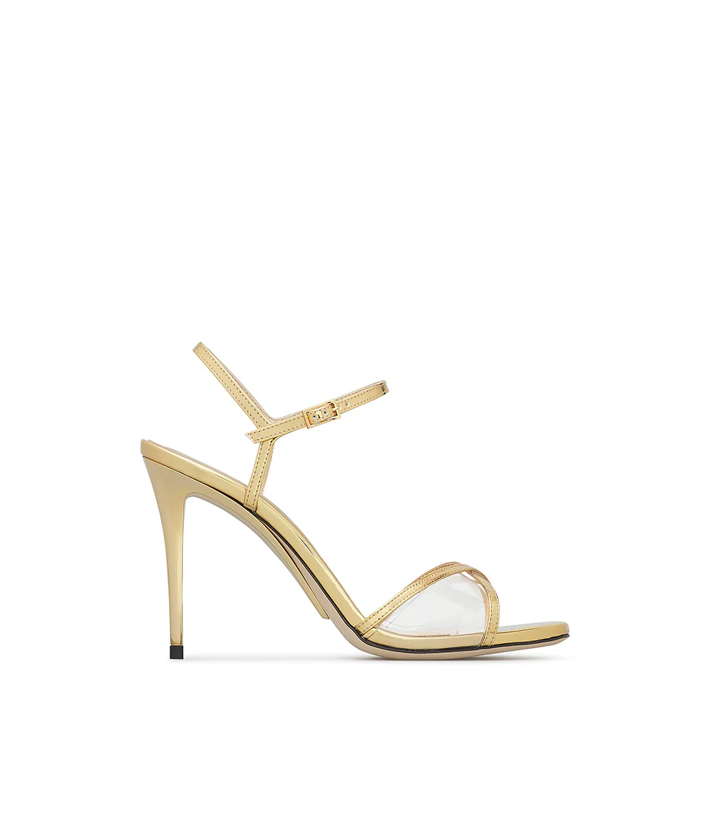 Sandalo in nappa specchio oro e plexi