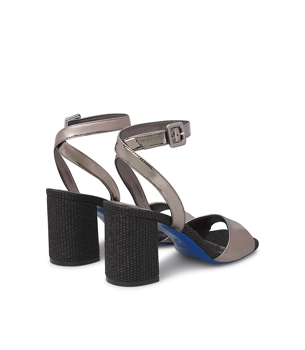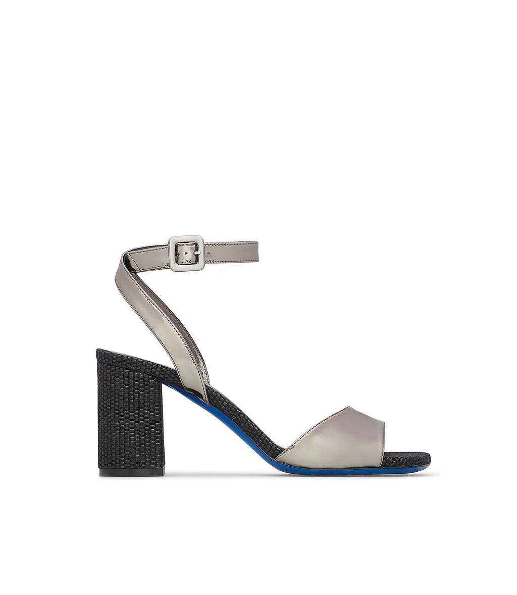 I sandali della nuova collezione presentano design elegante con ampia fascia frontale e cinturino alla caviglia in vernice antracite, punta arrotondata e confortevole tacco alto a blocco in tessuto intrecciato nero a contrasto e iconica suola in cuoio blu. Realizzati in Italia, sono gli alleati perfetti da indossare con gli outfit preferiti della bella stagione.