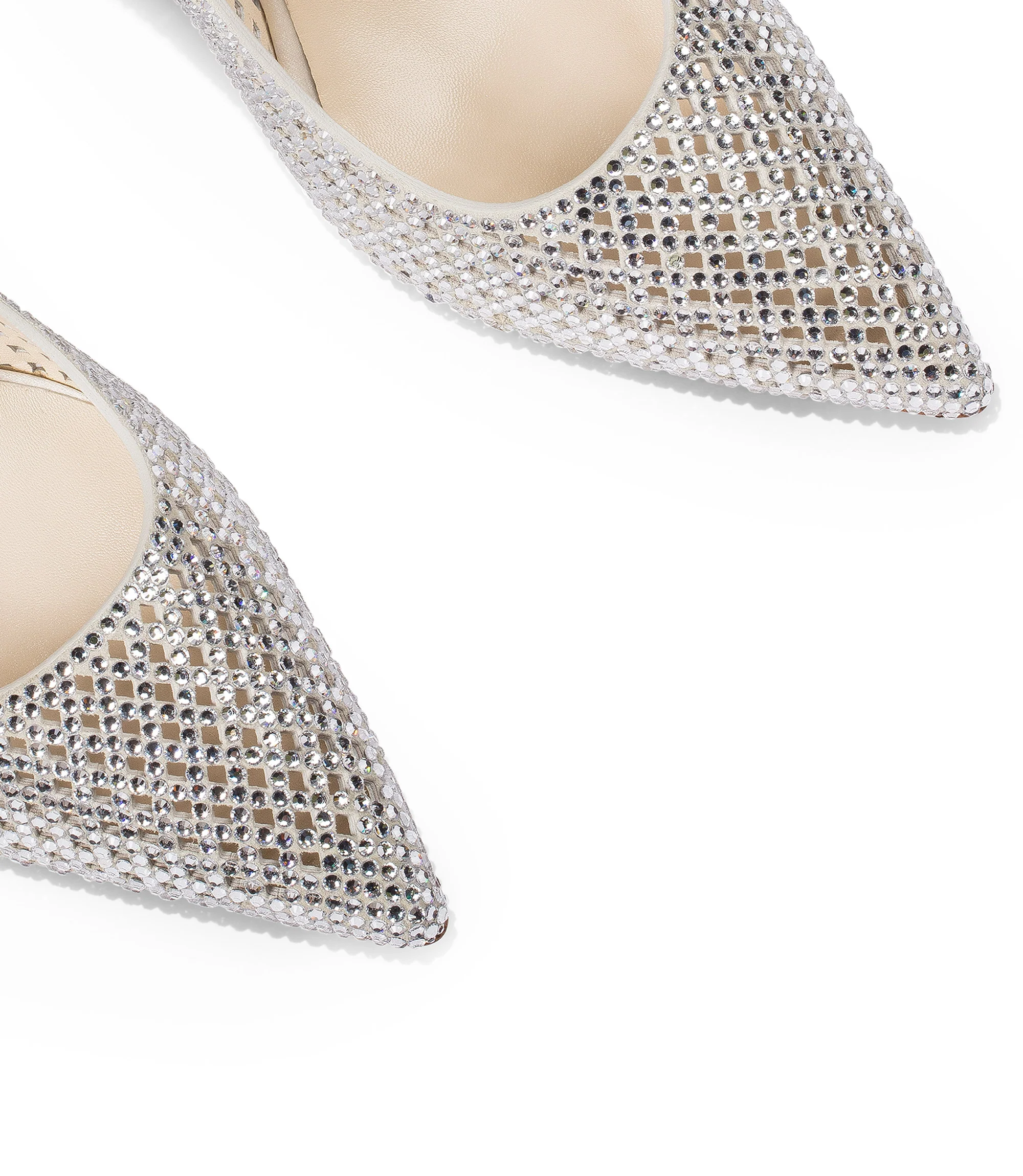 Scintillanti e preziose, le nostre slingback in pelle scamosciata nuance latte presentano luminosi cristalli lungo tutta la tomaia, punta affusolata e un classico cinturino in nappa sul retro. Sono realizzate con cura in Italia e rivelano una soletta in pelle con lati in raso tone-on-tone, suola in cuoio e tacco a stiletto. Perfette per la sposa e per le occasioni speciali.