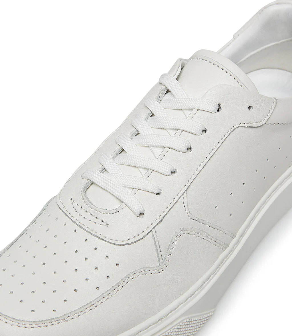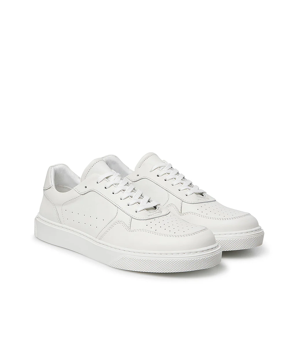 Ideali per uno stile downtown raffinato, le nostre sneakers sono realizzate in Italia in pregiata pelle bianca con dettagli traforati sulla tomaia e personalizzate dagli inserti in camoscio. Confortevoli e versatili, rivelano una punta arrotondata, lacci frontali e una suola flessibile in gomma.