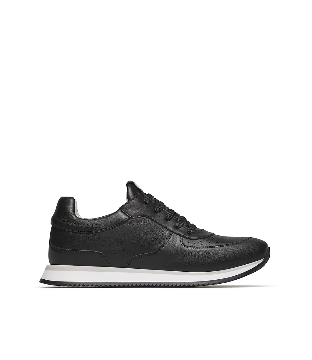 Eleganti e leggere, le nostre sneakers in pregiata nappa nera sono realizzate in Italia. Presentano una silhouette iconica con cuciture impeccabili, punta arrotondata, lacci frontali e una flessibile suola in gomma bicolore. Versatili e confortevoli, ideali per aggiungere un tocco sportivo ai tuoi outfits.
