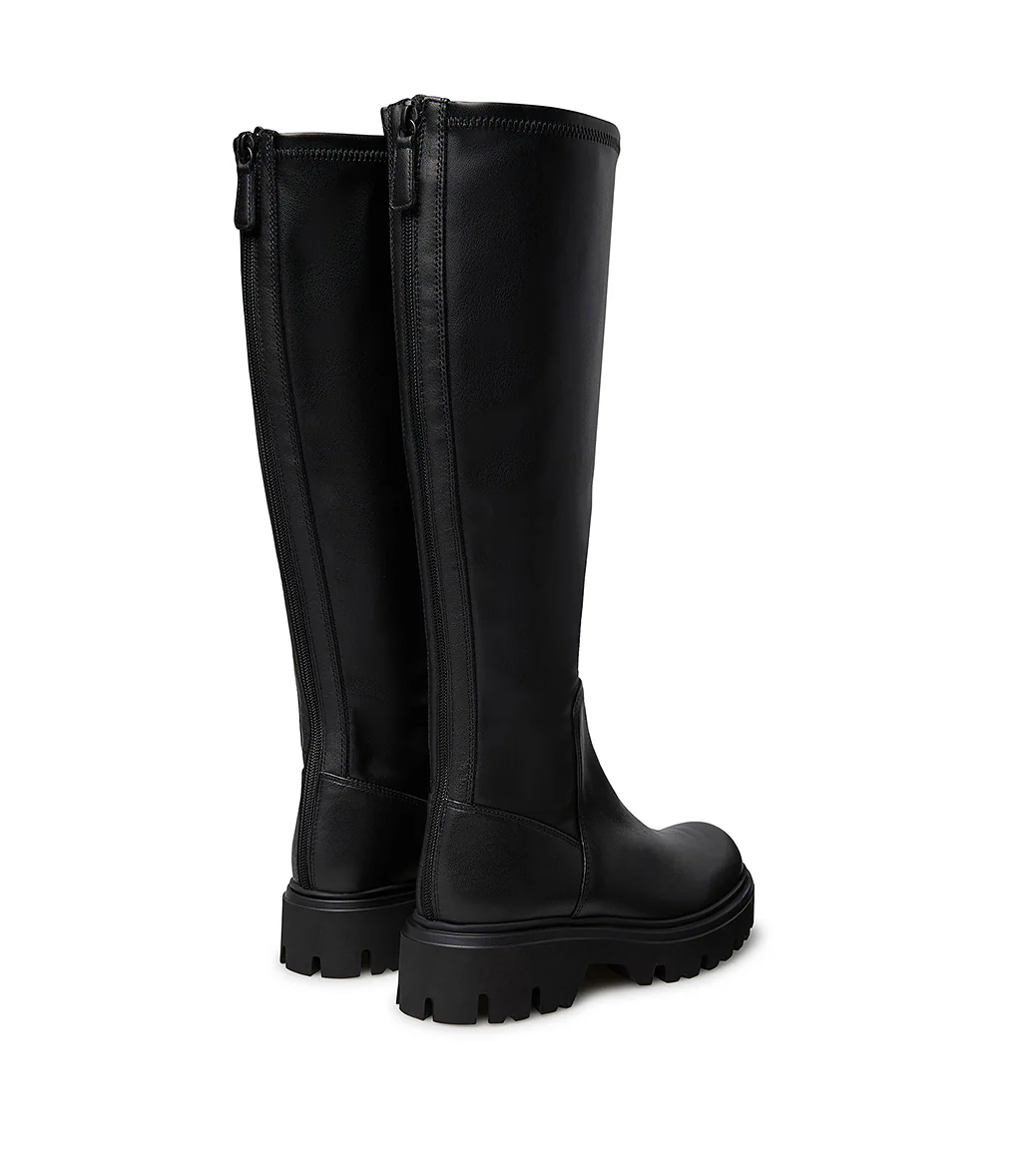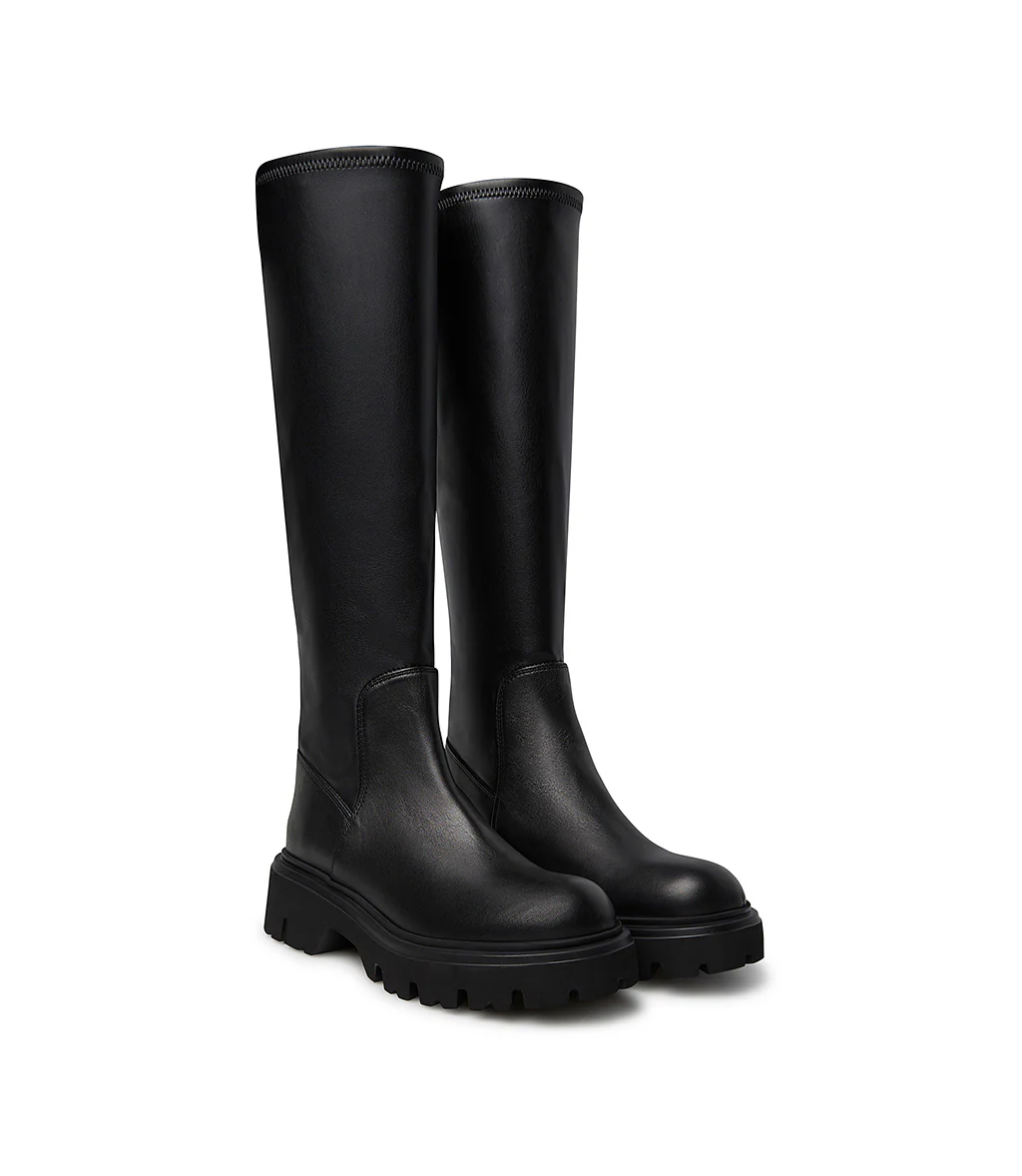 Realizzati in morbida nappa nera e stretch, i nostri stivali avvolgono la gamba e sono perfetti per aggiungere un tocco confortevole e moderno ai tuoi nuovi looks della stagione. Presentano una punta arrotondata, zip posteriore e suola chunky carrarmato in gomma.