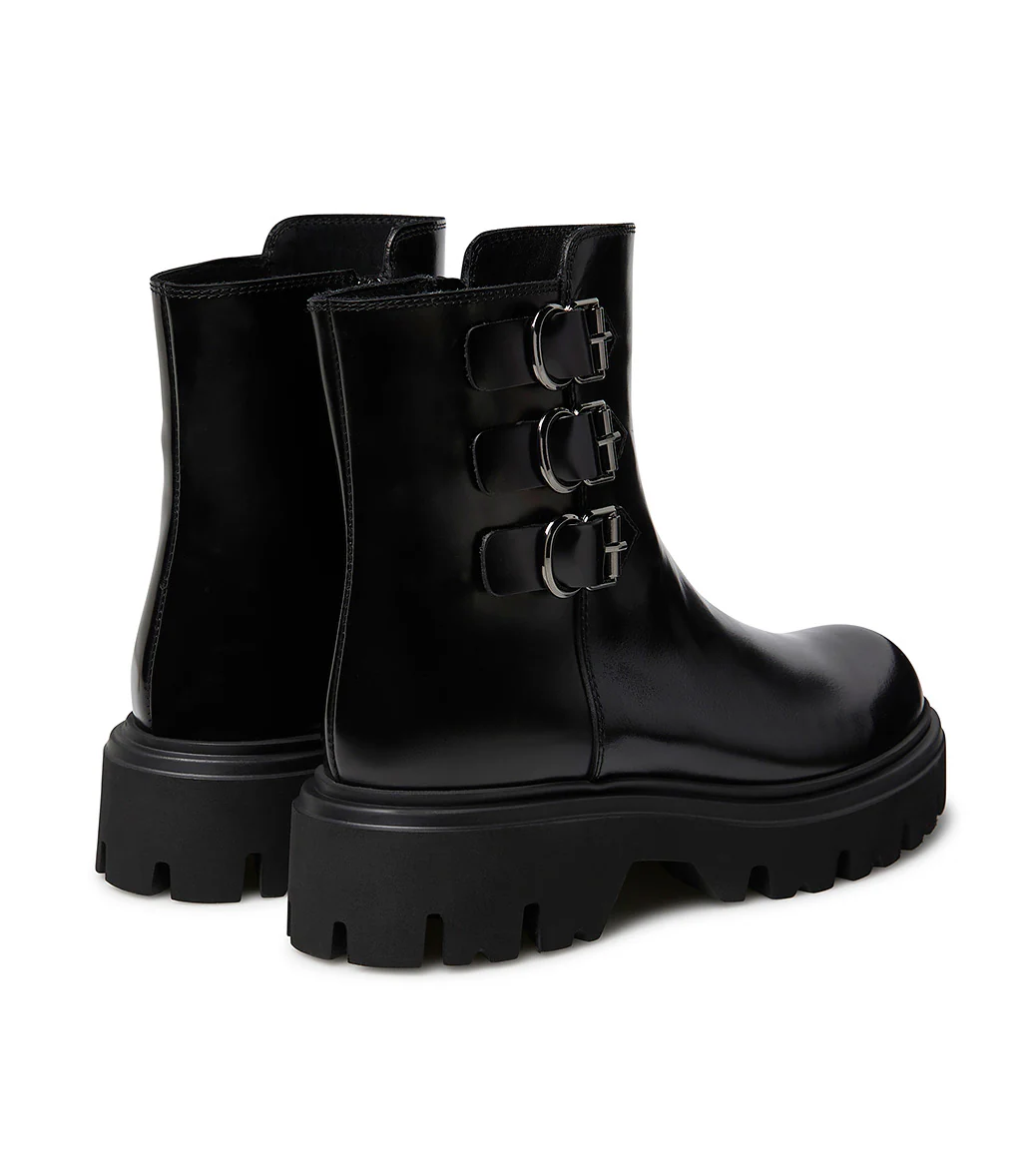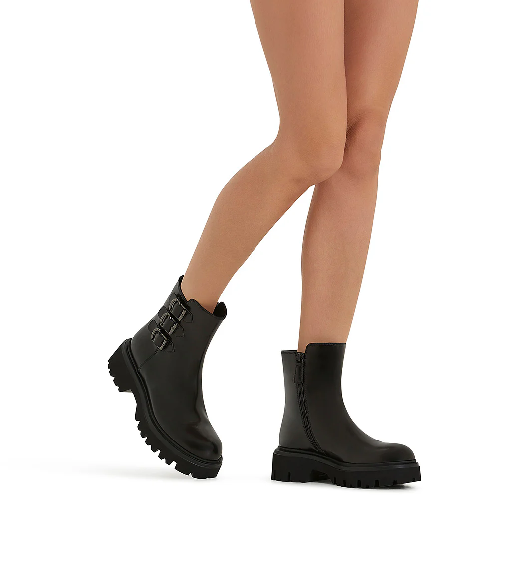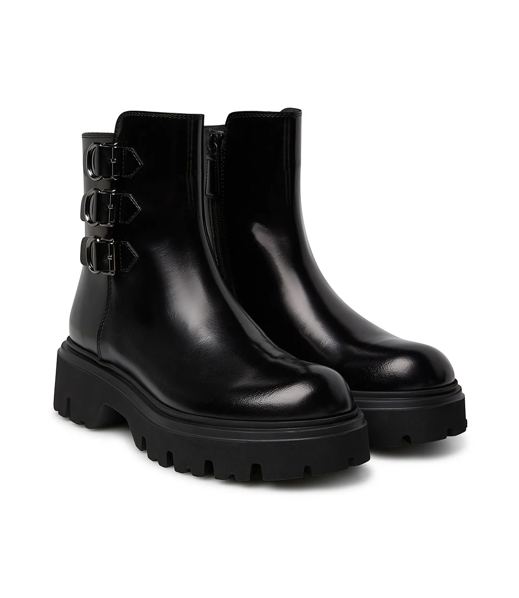 Stivaletto in vitello spazzolato nero con cinturini