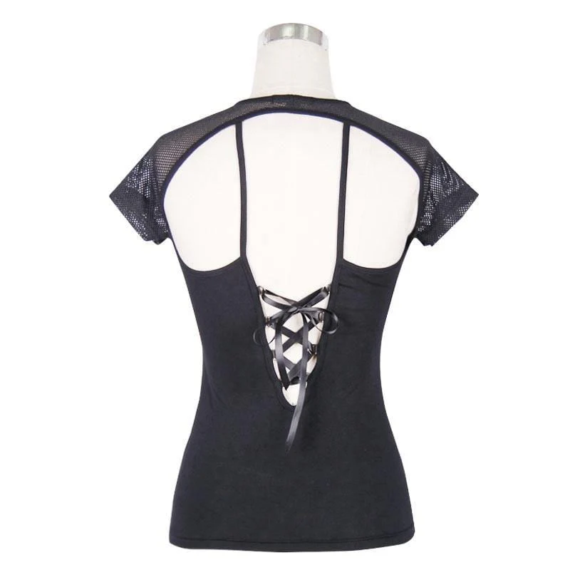 Descrizione: Questa t-shirt a canotta ha subito una trasformazione con maniche a maglia corta e carré che forma una scollatura in stile peekaboo. La parte posteriore ha una scollatura profonda con allacciatura incrociata. Il semplice capo lavorato a maglia è disegnato per adattarsi al corpo.