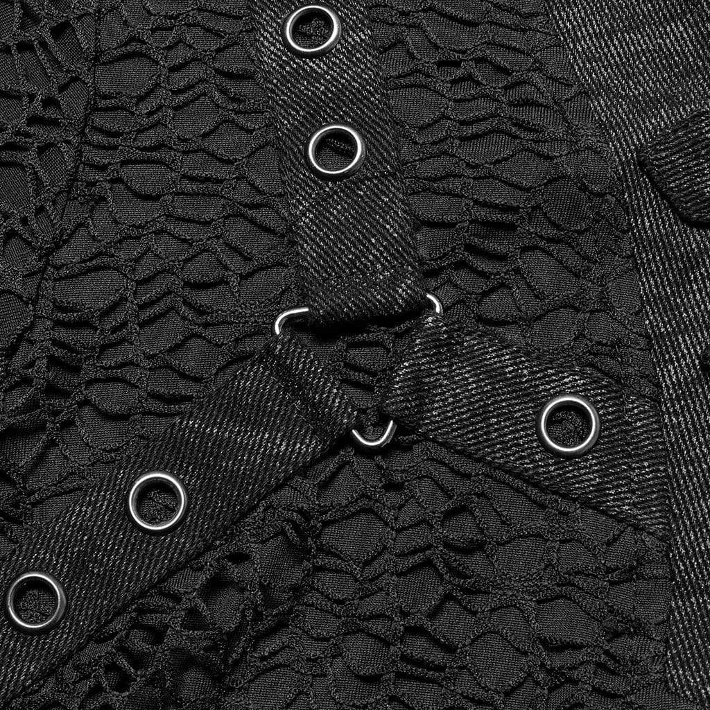 T-shirt da uomo in tessuto a rete con fibbia punk