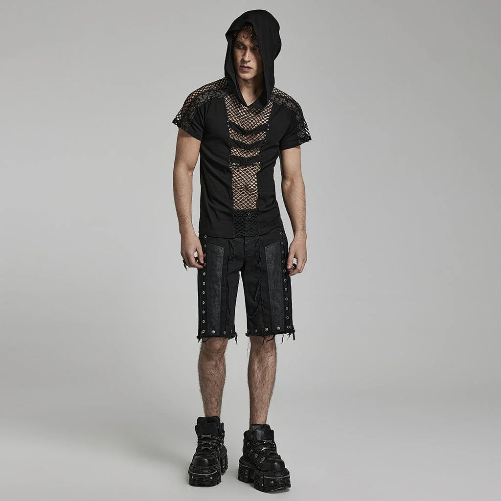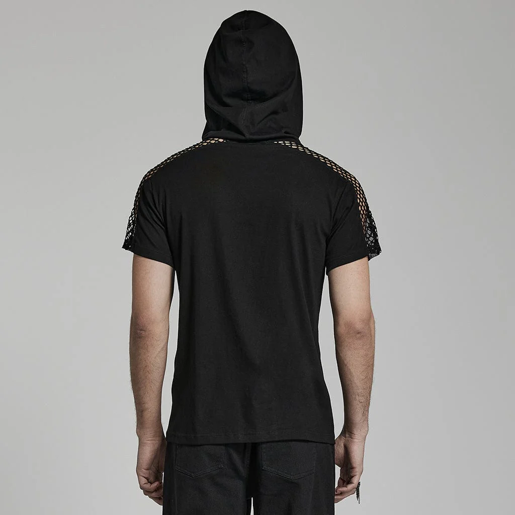 T-shirt da uomo Punk Mesh Splice con cappuccio