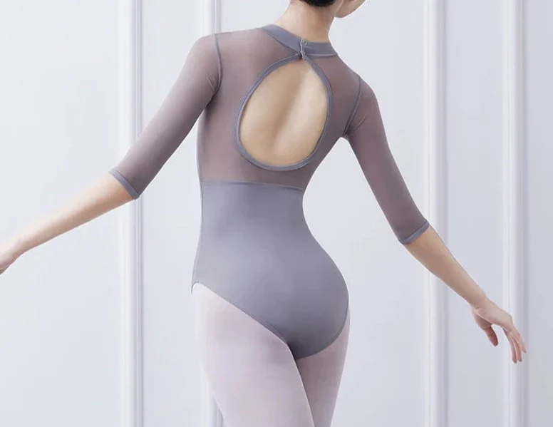For the dancer with elegant style. This chic leotard features long sleeves, a high neck and a mesh contrast. Nylon, Spandex. Imported.
